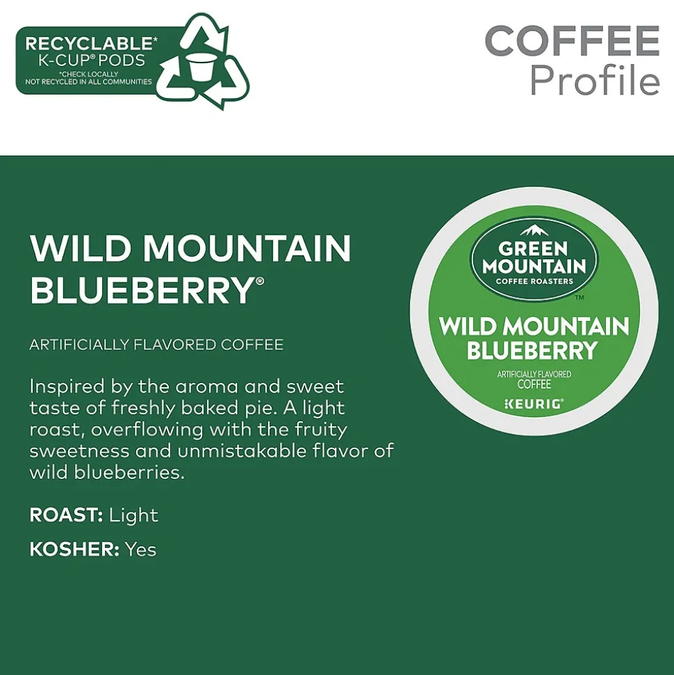 Enjoy a rich, fruity way to relax during breaks with these Green Mountain Wild Mountain Blueberry coffee Keurig K-Cups. The light roast is perfect for an anytime treat. These Green Mountain Wild Mountain Blueberry coffee Keurig K-Cups come in a 24-count package, so there’s plenty for your office staff to enjoy.