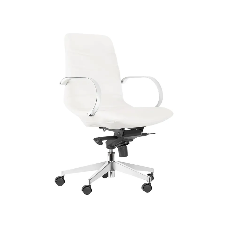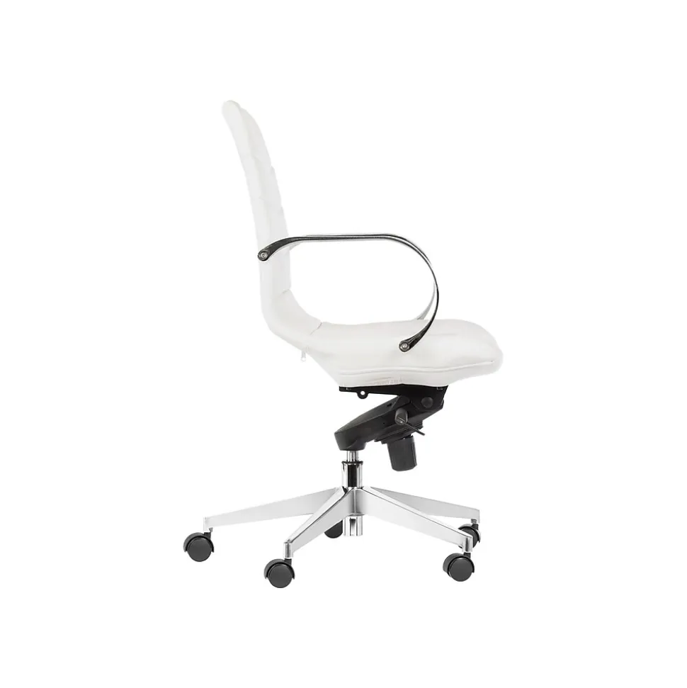 This Gry Mattr ergonomic office task chair with bungee lumbar support will make your work easier. The five-star base with casters adds mobility. White faux leather upholstery and steel armrests will complement any interior.