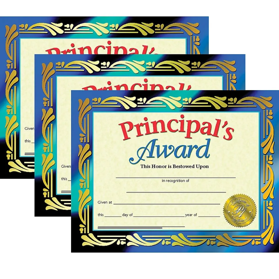 - Principal’s Award Certificate, Multicolored; Use for any classroom or school award