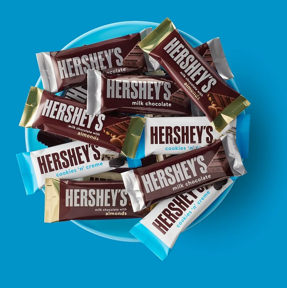 - Includes HERSHEY’S Cookies ‘n’ Creme white creme with cookie bits snack size candy bars, HERSHEY’S milk chocolate snack size candy bars and HERSHEY’S milk chocolate with almonds snack size candy bars