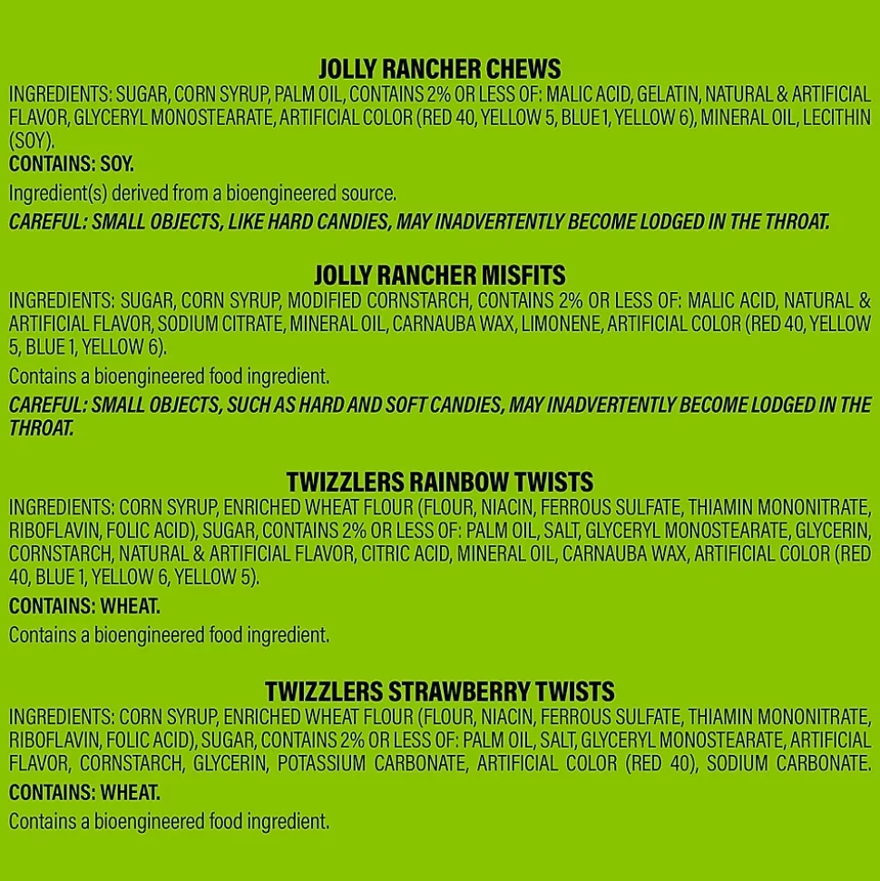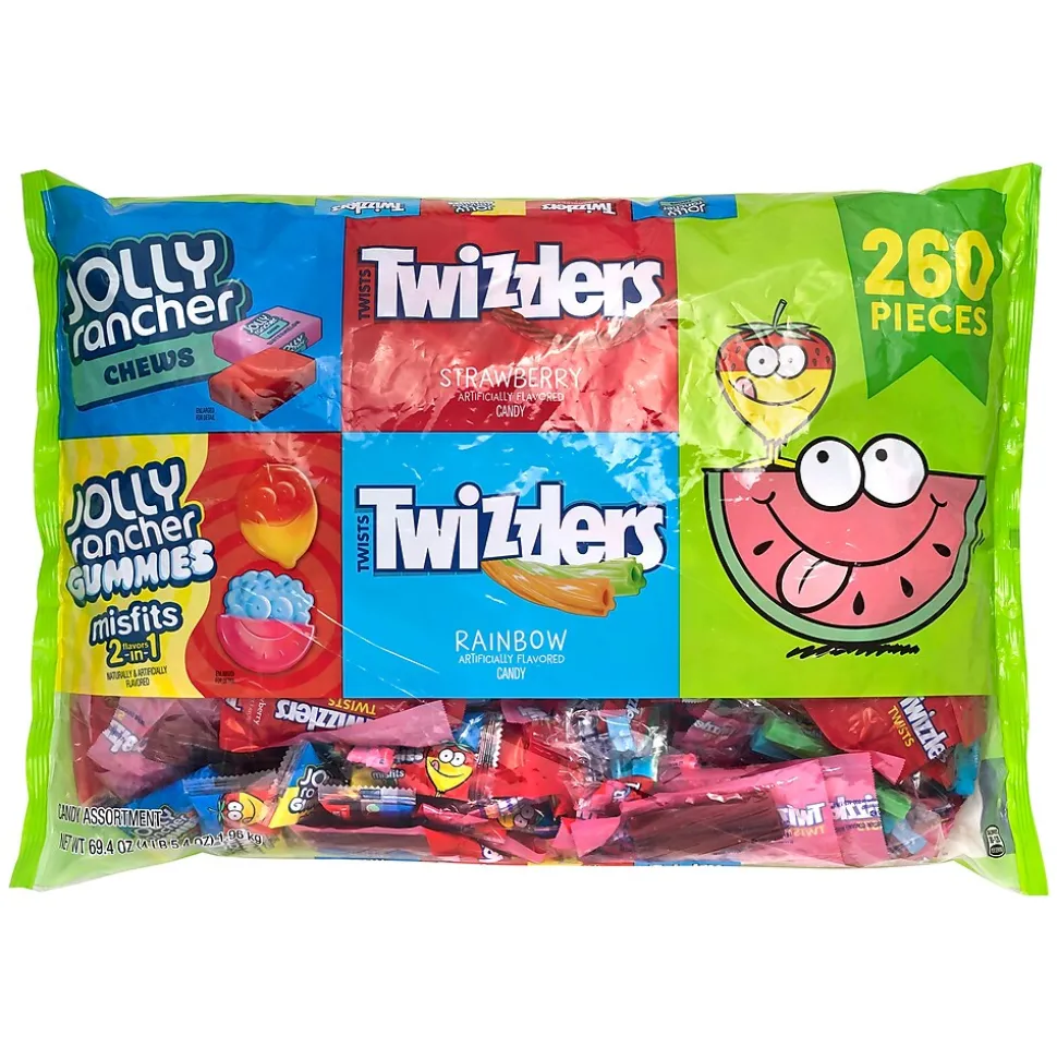 - Contains Jolly Rancher chews candy, Jolly Rancher misfits gummies, Twizzlers rainbow twists chewy candy and Twizzlers twists strawberry-flavored chewy candy.