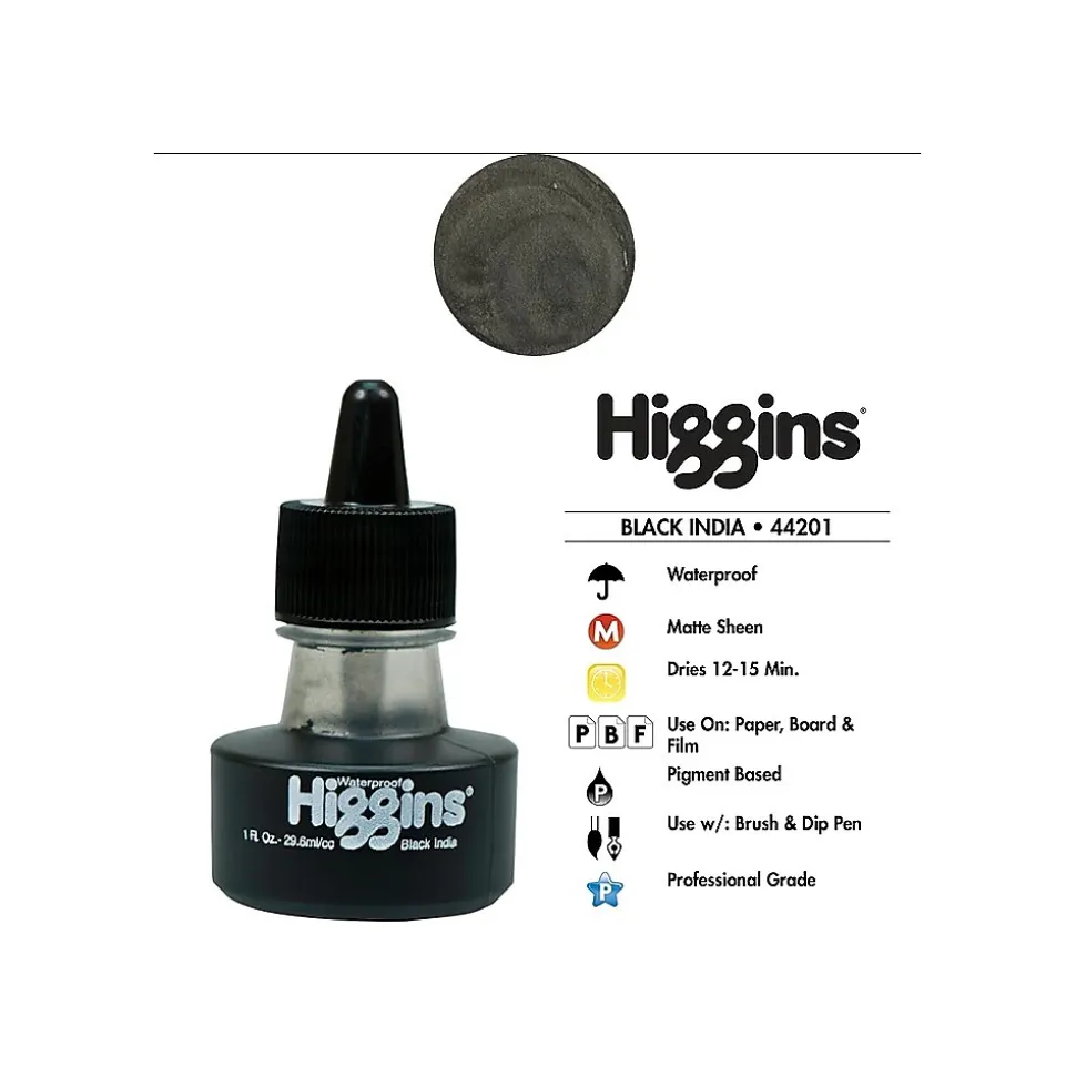 Higgins Bottled Ink Pen Refill, Black India Ink, Each (44201)