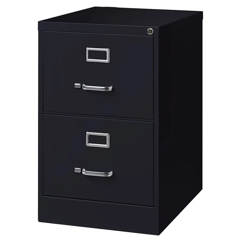 25″ deep metal, 2 drawer, legal width, commercial grade vertical file cabinets are perfect for business, educational, or personal offices. These cabinets feature a classic design and are constructed with high quality durable materials that are suitable for heavy-duty use. Ships fully assembled and is ready to accept legal width hanging file folders. Smooth surface is easy to clean. Each drawer includes full extension ball-bearing slides for smooth drawer action. Even fully loaded, these drawers open with ease. Adjustable follower wires keep files upright. The included core-removable lock allows cabinets to be keyed alike. Designed to meet or exceed ANSI-BIFMA industry standards for performance and workmanship. Made with 28% total recycled content. Backed by a Limited Lifetime Warranty.