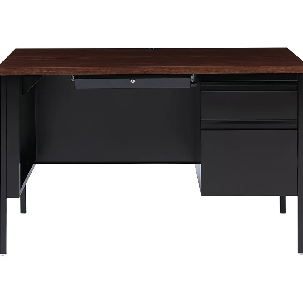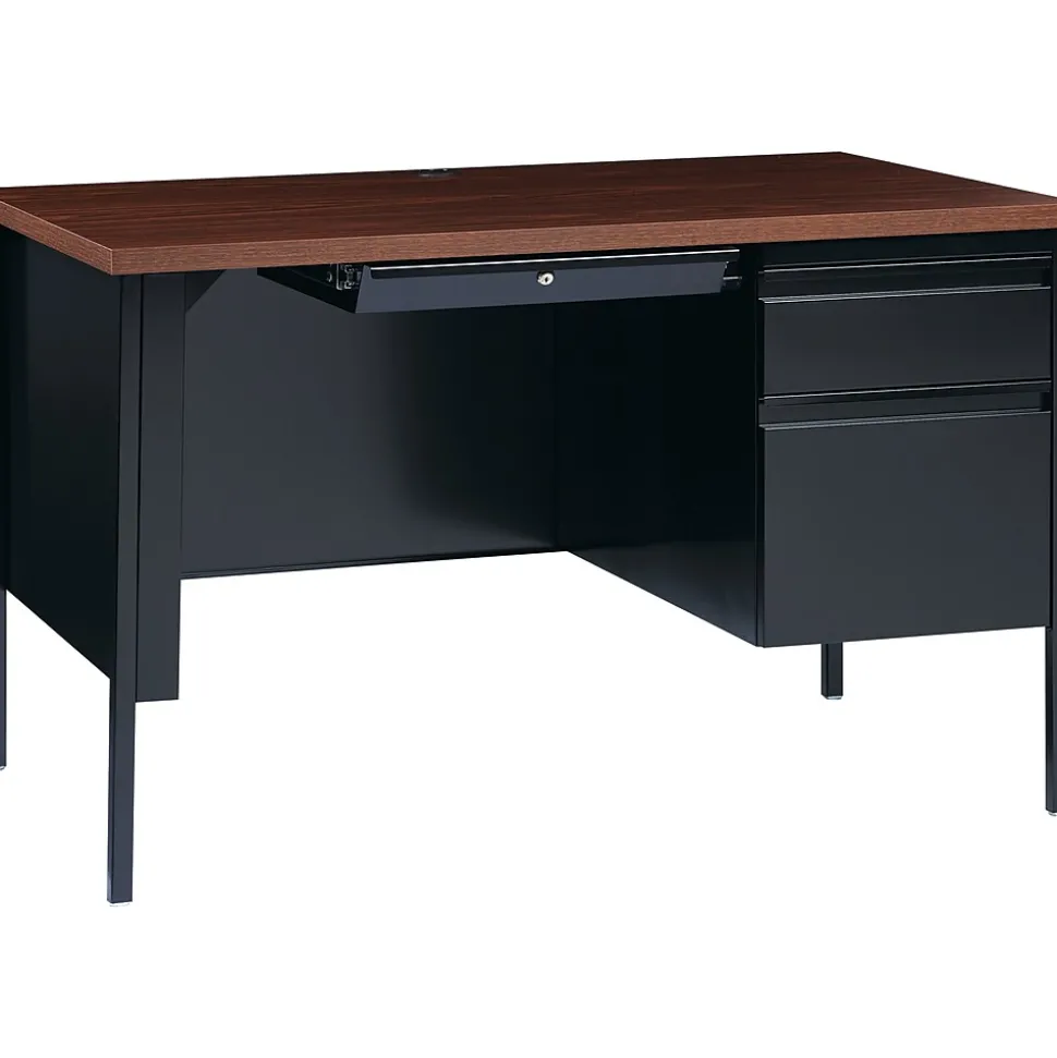 Commercial grade metal desks are perfect for business, educational or personal offices. These desks are constructed with high quality durable materials that are suitable for heavy use. Standard features include: full extension ball-bearing slides for smooth drawer action, central locking center drawer, and a durable laminate work surface. Desk ships fully assembled except for the legs. Hardware to attach legs is included. All desks are designed to meet or exceed ANSI-BIFMA industry standards for performance and workmanship and are backed by a Limited Lifetime Warranty.
