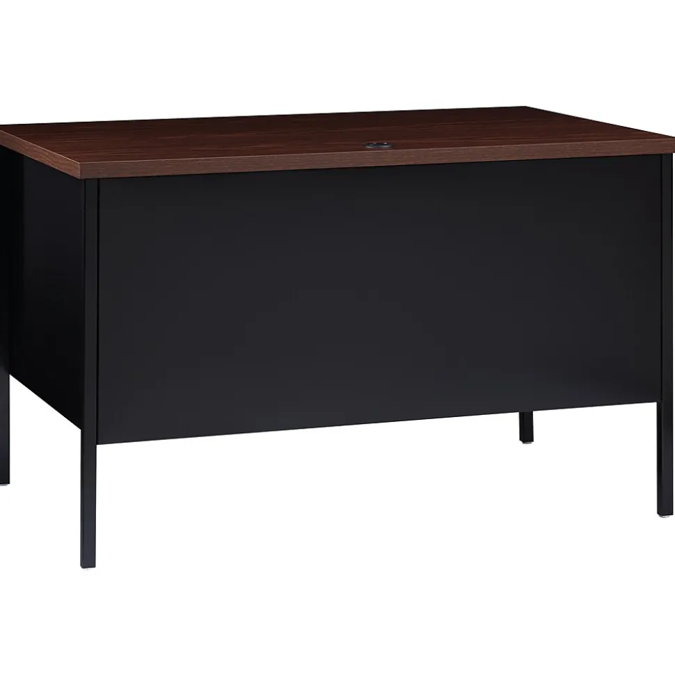 - Constructed of high-quality steel in black with laminate work surface in a walnut finish
