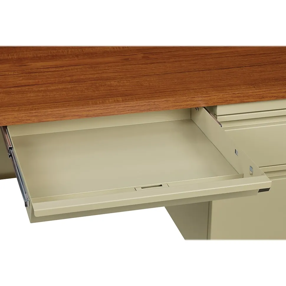 Commercial grade metal desks are perfect for business, educational or personal offices. These desks are constructed with high quality durable materials that are suitable for heavy use. Standard features include: full extension ball-bearing slides for smooth drawer action, central locking center drawer, and a durable laminate work surface. Desk ships fully assembled except for the legs. Hardware to attach legs is included. All desks are designed to meet or exceed ANSI-BIFMA industry standards for performance and workmanship and are backed by a Limited Lifetime Warranty.