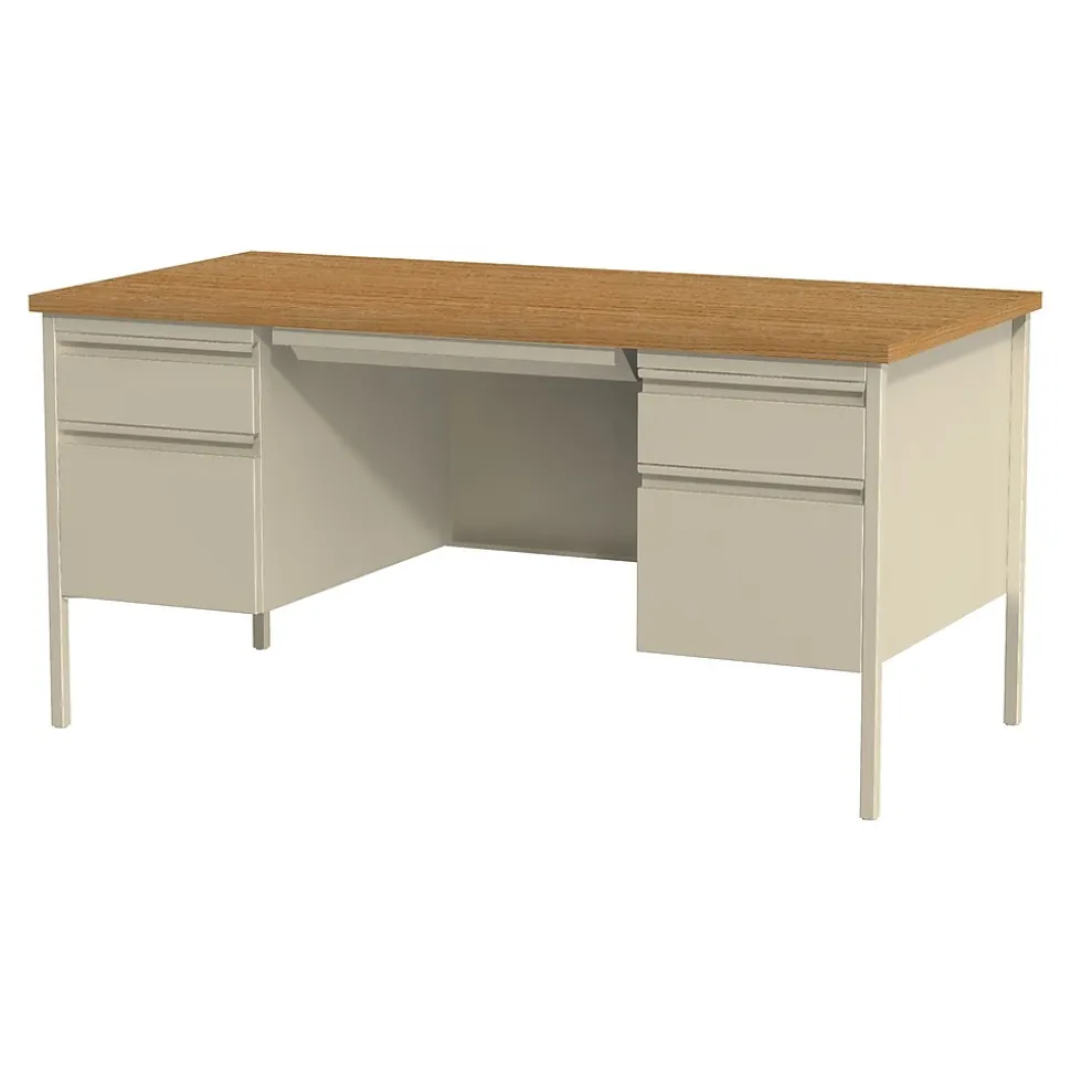 Our metal desks are perfect commercial grade desks for business, educational or personal offices. These heavy-duty desks feature steel construction and are suitable for heavy use. Standard features include full extension ball-bearing drawer slides for smooth drawer action, central locking center drawer, and a strong laminate wood top. Our desks ship fully assembled except for the legs. All necessary hardware to attach the legs is included. Our desks are eco-friendly, constructed with 30% recycled materials, and are designed to meet or exceed ANSI-BIFMA industry standards for performance and workmanship. Our commercial desks are also backed by a Limited Lifetime Warranty.