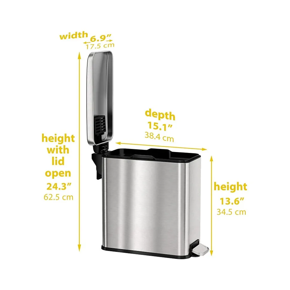 - Step trash can ensures clean, litter-free space and provides hands-free operation