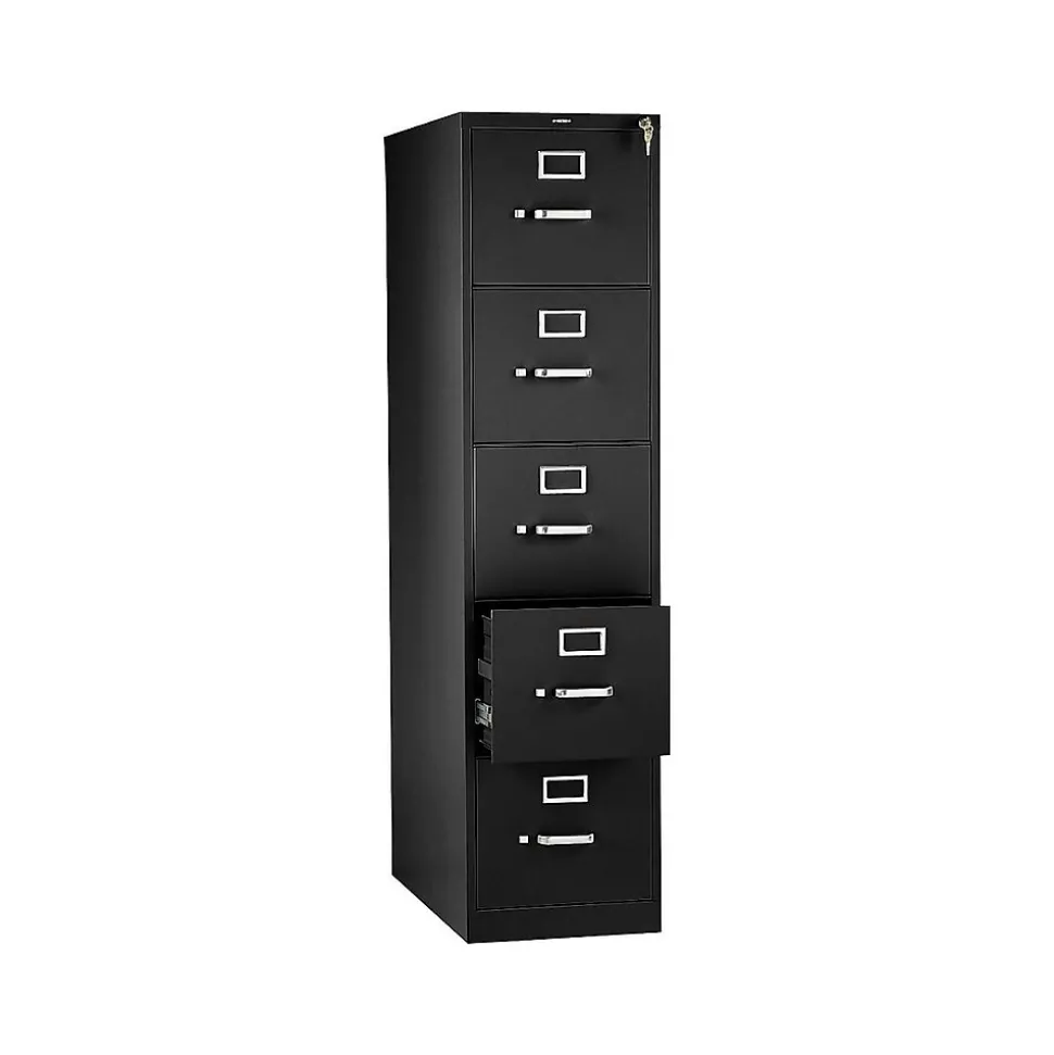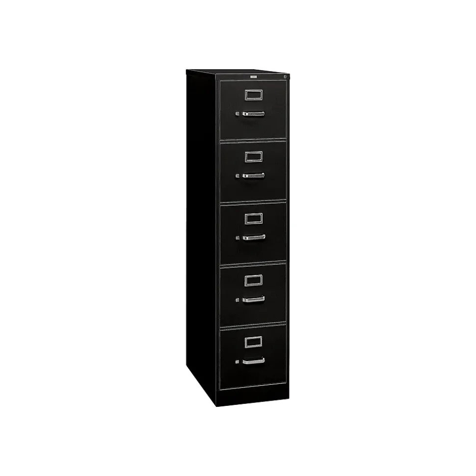 Hold essential records in this five-drawer filing cabinet. Each drawer has a thumb latch for secure closure and a steel ball bearing suspension system for a seamless glide and smooth access.