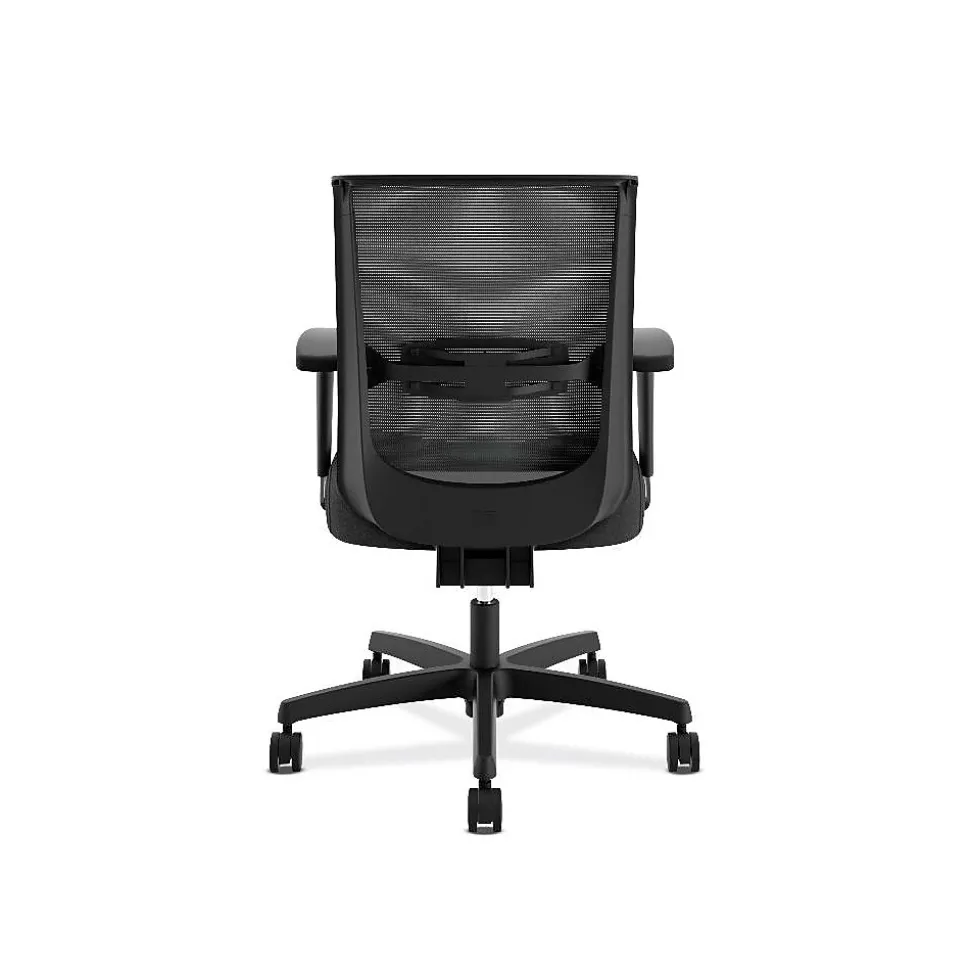 HON Convergence black vinyl task chairs with adjustable arms can be customized to each employee’s individual needs. The pivoting lumbar support conforms to your lower back to keep your spine aligned for better posture throughout the work day. Adjustable width and height arms help your hands and wrists stay nimble and comfortable when typing on your computer or making notes on your work surface. The synchro-tilt mechanism maintains proper balance when you lean forward and back, or while turning for a dynamically efficient chair.