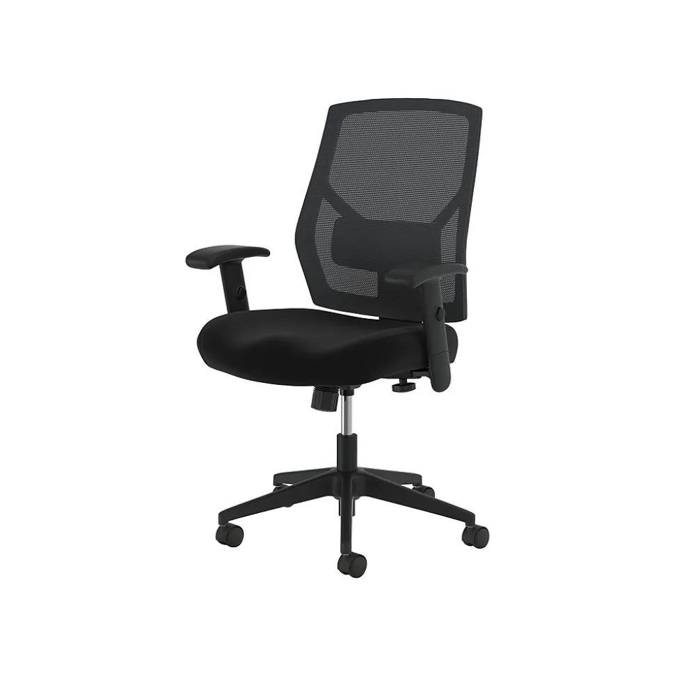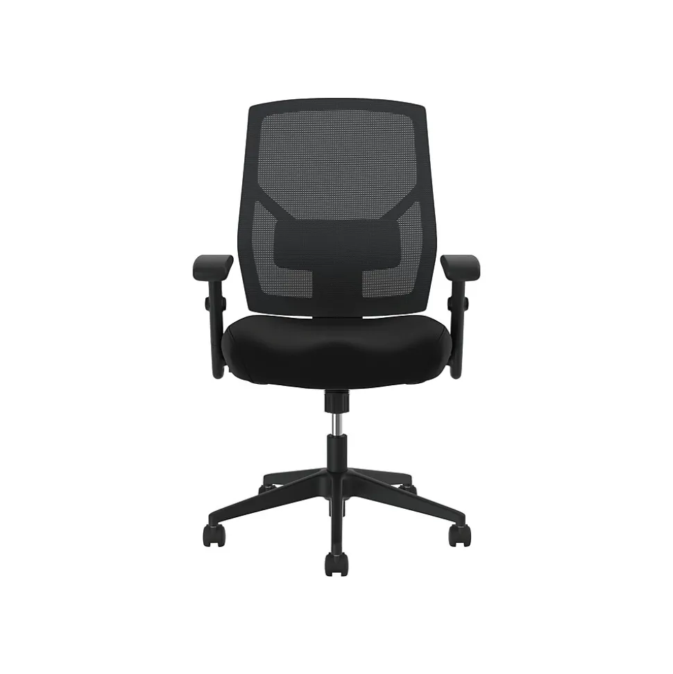 This Crio high-back task chair gives you advanced features at a compelling price. The breathable mesh back delivers cool comfort while giving the chair a cool look, and the adjustable lumbar support enhances lower back comfort. Height- and width-adjustable arms put the support right where you need it, while the center-tilt recline control allows you to find the most comfortable posture. Simple, clean design combined with customizable comfort make this a great value. Mesh and leather seat colors are Black.