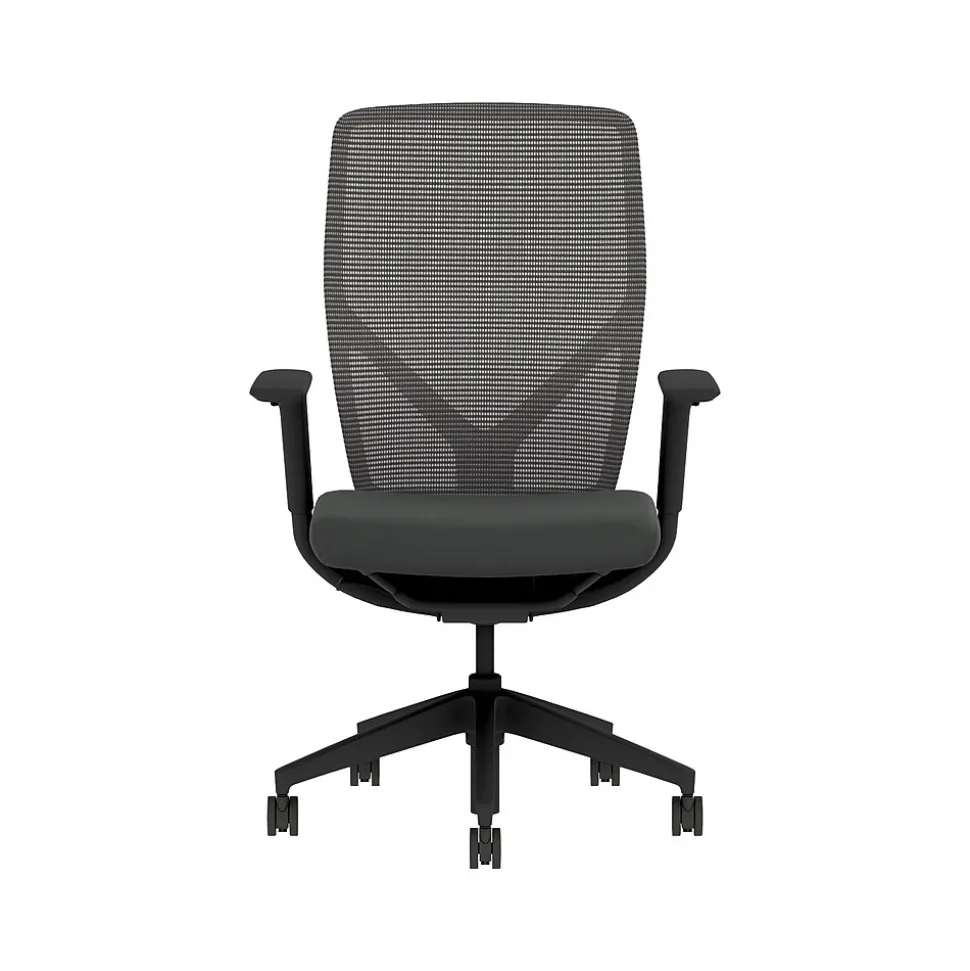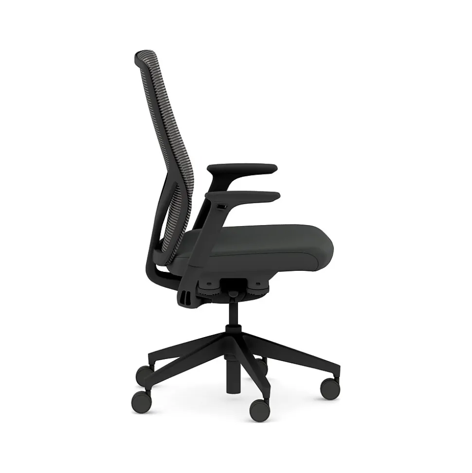 - Black four-way stretch mesh back, Contourett black fabric seat, black frame