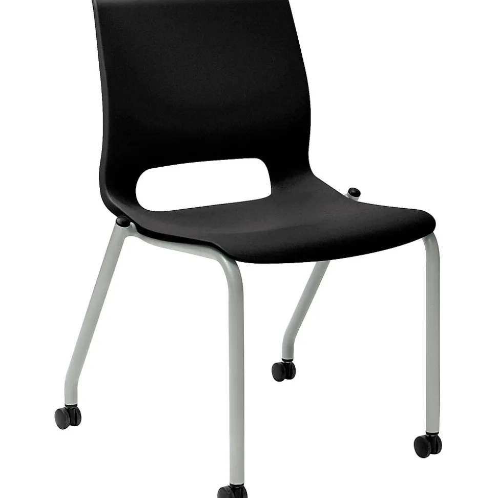 HONĀ® Motivate Onyx plastic armless stacking chair with stylish platinum frames features luxurious onyx shell to provide exceptional comfort to your body. Chair with 300 lbs capacity can be stacked up to 6 high on the floor to save maximum space.