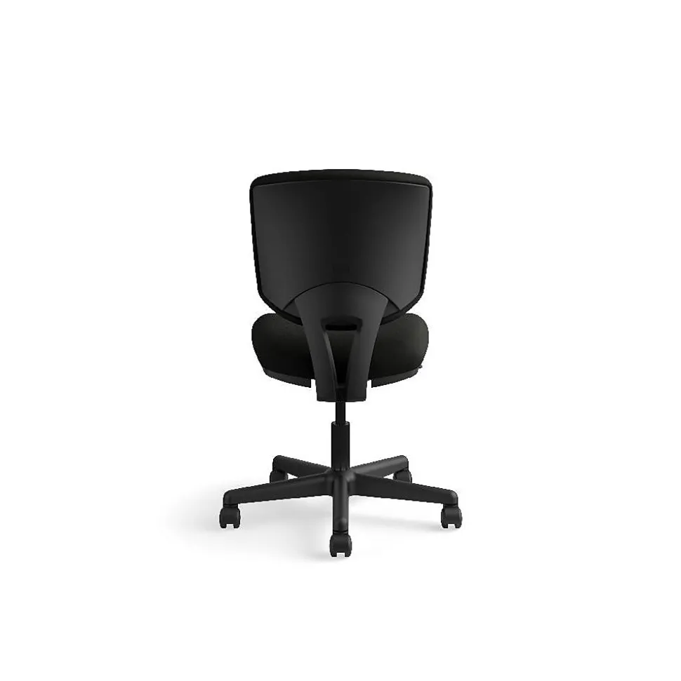 Create a comfortable and modern seating arrangement for your office with this HON Volt task chair. The armless design makes it easy to get in and out of the seat, while the SofThread leather upholstery adds a rich, inviting texture. Contoured seat cushions conform to your body for exceptional support throughout the workday. This chair features a synchro-tilt mechanism, providing a perfect height-to-angle ratio, so you can lean back while still enjoying proper back alignment. A pneumatic seat height adjustment lever lets you move the seat to match your desk setup, and the upright tilt lock keeps you sitting at attention when working on critical projects. Featuring a five-star base with rolling casters and a compact design, this HON Volt task chair offers effortless mobility.