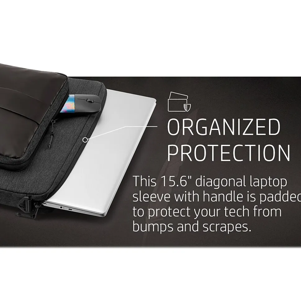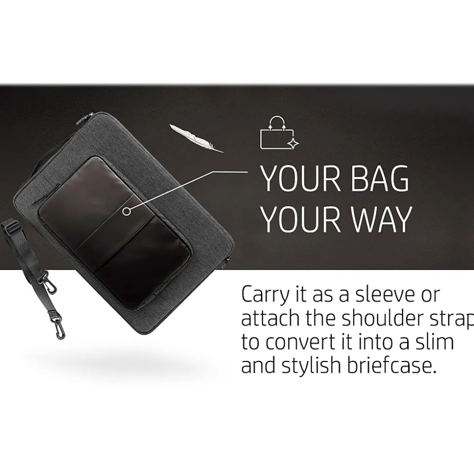 Navigate the world with a timeless and lightweight laptop sleeve featuring a convertible design and water-resistant fabric to help protect your tech on the go. This 15.6″ diagonal laptop sleeve is padded to protect your tech from bumps and scrapes. Carry it as a sleeve or attach the shoulder strap to convert it into a slim and stylish briefcase. Carry your tech, stress-free. The distinctive external 3D pocket with color-blocking effects provides extra storage and quick access to your phone, tickets, keys, and more.