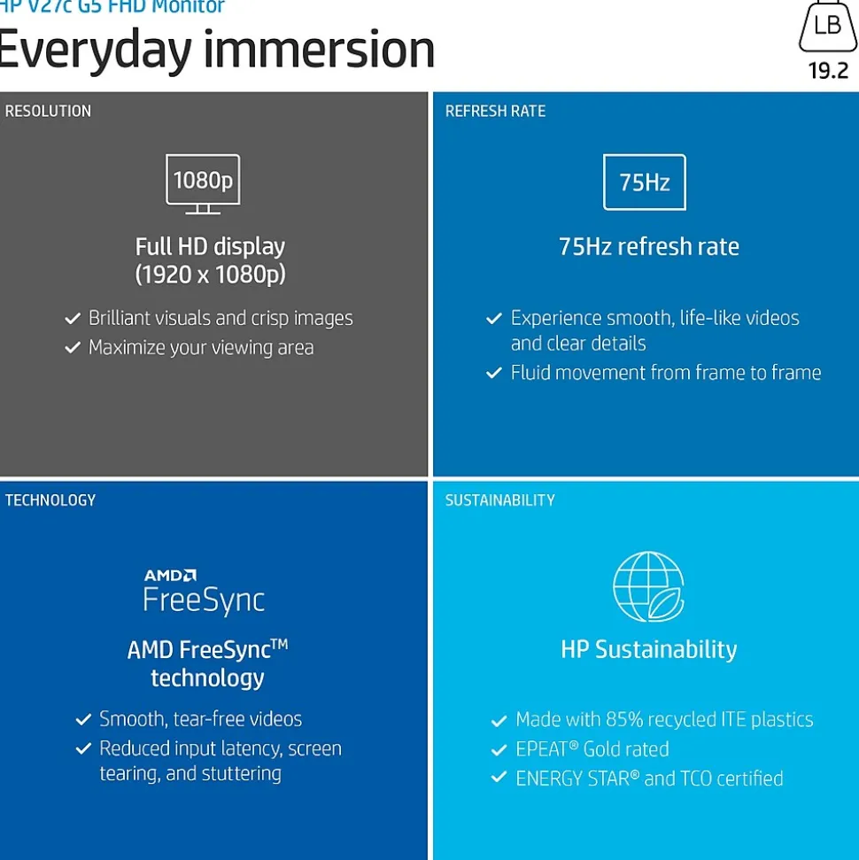 - Experience smooth, life-like video and clear detail with a 75Hz refresh rate that provides fluid movement from frame to frame