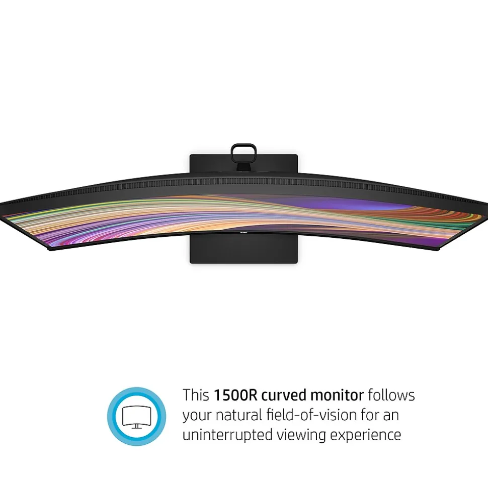 Immerse yourself in work, school, and entertainment with this 27″ diagonal curved monitor. Now, you can experience heightened productivity in the engaging curve and smooth, tear-free Full HD screen every day, right at home. With the modern and functional design, it’s never been easier to get more done and have more fun. See and do more with a captivating view on this 27″ monitor with a 1500R curvature rate. The sizeable curve follows your natural field of vision for an uninterrupted and engaging viewing experience when you’re working, learning, or browsing. Enjoy a seamless experience complete with excellent image quality and clear sounds. This monitor boasts Full HD resolution and AMD FreeSync technology, featuring a 75Hz refresh rate for sharp images and tear-free video, while the built-in dual speakers provide full, distinct audio. Keep the focus on your screen through the unobtrusive three-sided micro-edge bezel, neat cable management, and slim stand with adjustable tilt, or stay in your flow by easily changing settings with the joypad OSD button or HP Display Center. To do more for the planet, HP is helping to close the loop by repurposing IT equipment in its EPEAT Gold rated and ENERGY STAR monitors. To go above and beyond, HP monitors contain 85% recycled plastics solely from recycled ITE plastics. Plus, this monitor ships in 100% recyclable packaging.