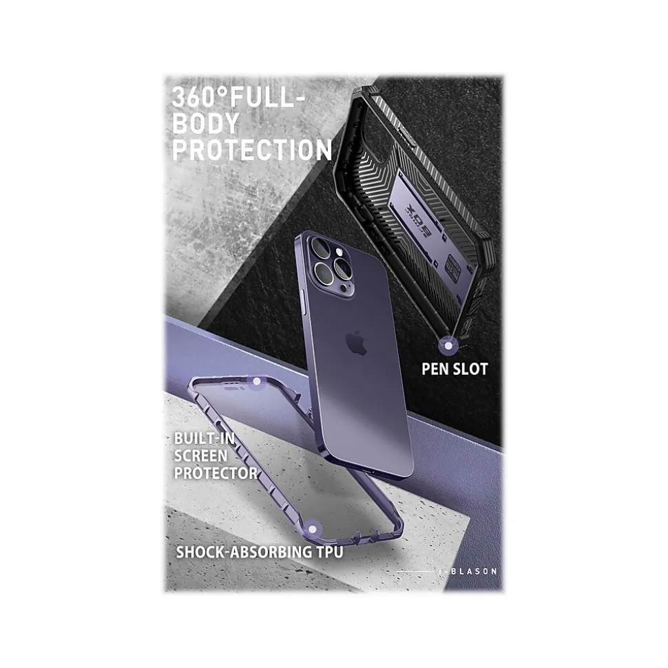 The i-Blason Armorbox rugged case ensures 360-degree full-body protection for your iPhone 14 Pro Max (6.7″ screen). Precise cutouts allow seamless access to all ports and features. Exceeds military drop standards: drop-tested at 48″ height, 26 times.