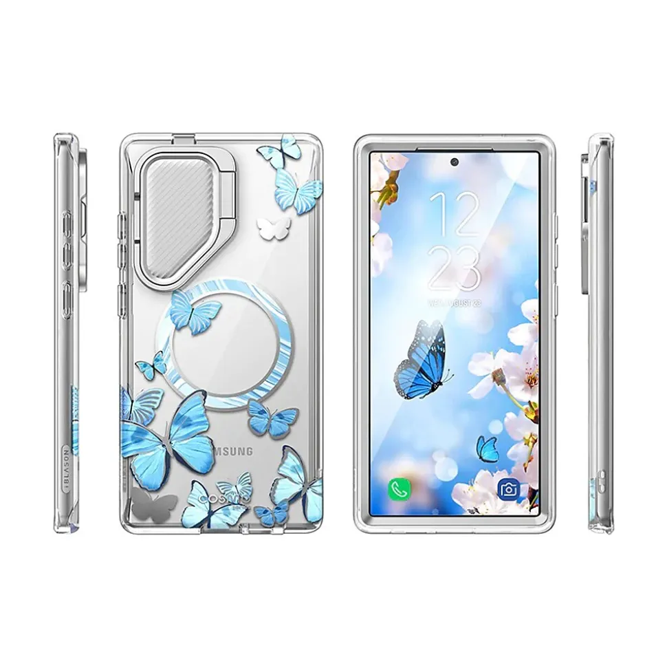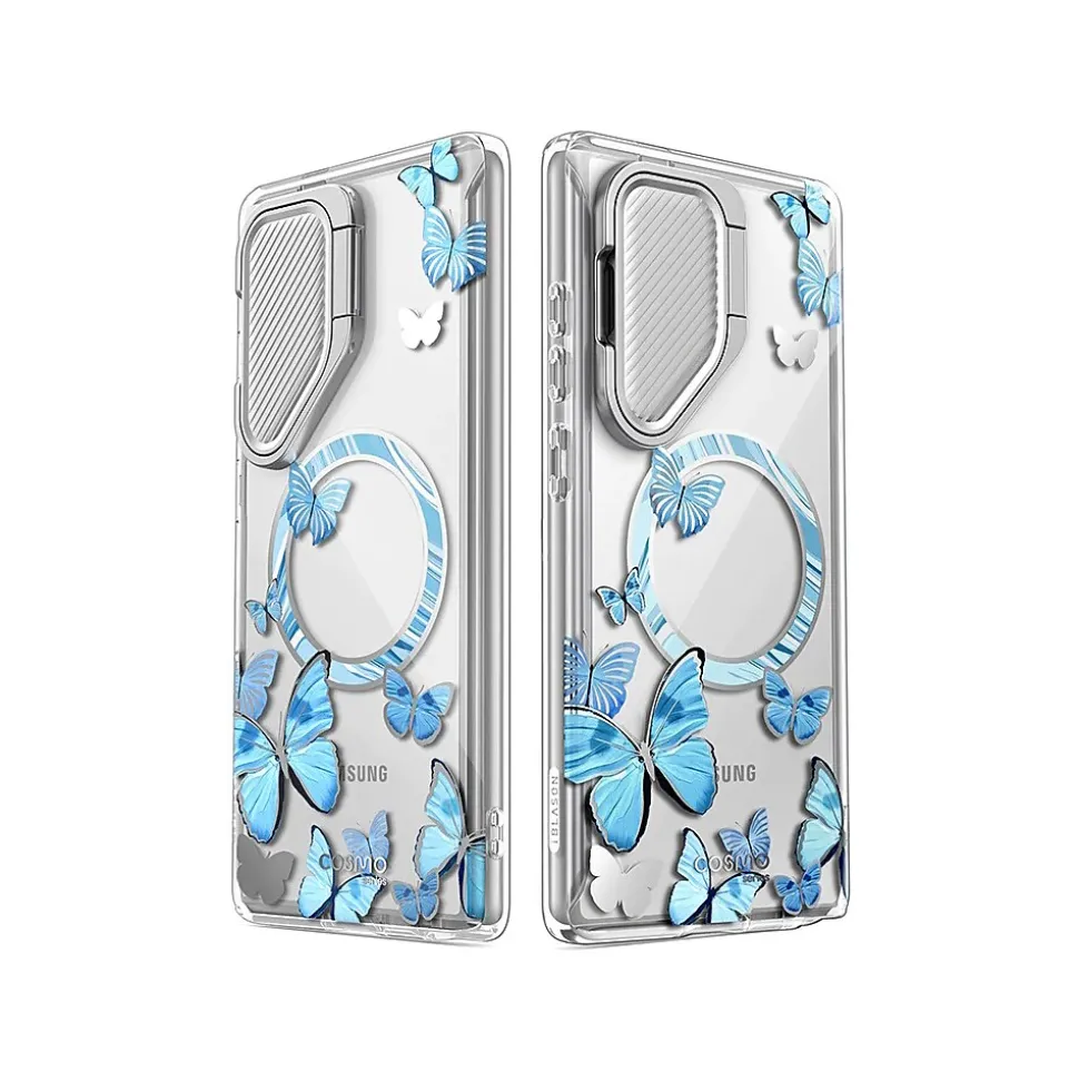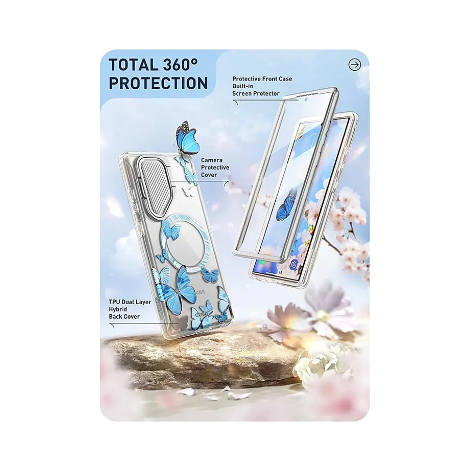 The i-Blason Cosmo Clear BlueFly case ensures a 360-degree protection for your Samsung Galaxy S24 Ultra (2024). Featuring a full-body design, the case guards your smartphone against drops and falls. Raised edges keep the screen and lens off damaging surfaces. Includes a built-in screen protector.
