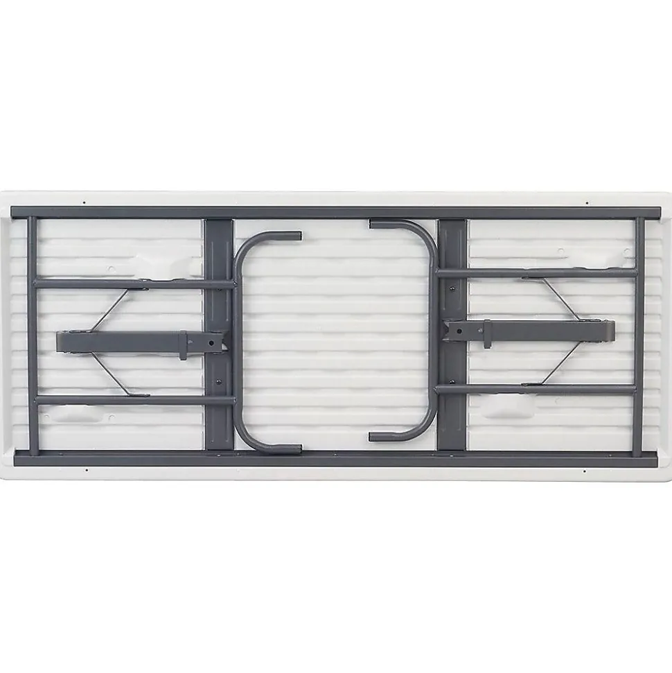 Ensure there is plenty of space to work with by setting up this 8-foot platinum granite folding banquet table. Constructed with 1-inch-thick tubing, this table supports up to 600 pounds, while the utility-grade resin prevents scratches, dings and other damage. This Iceberg banquet table is easy to fold up, providing a simple storage solution and offering portability.