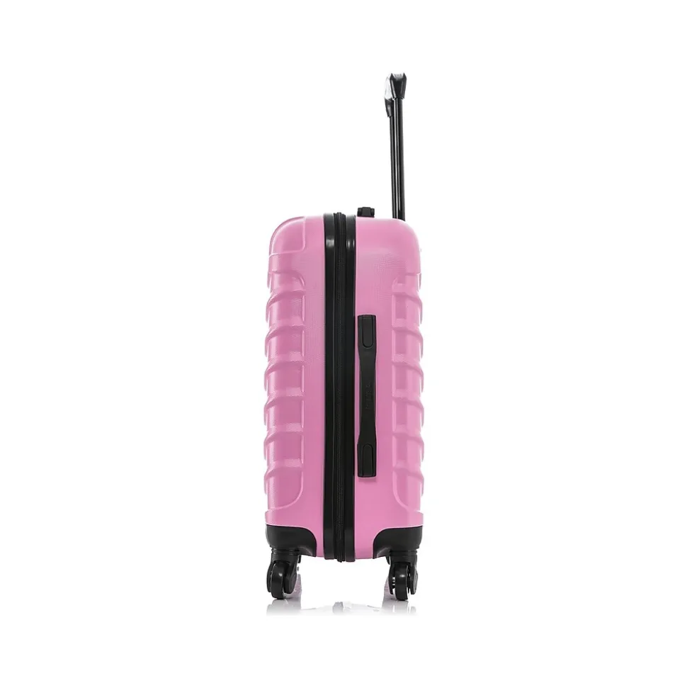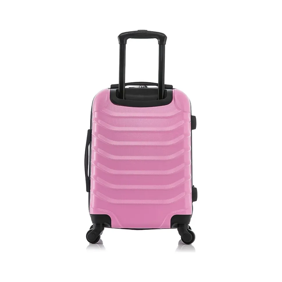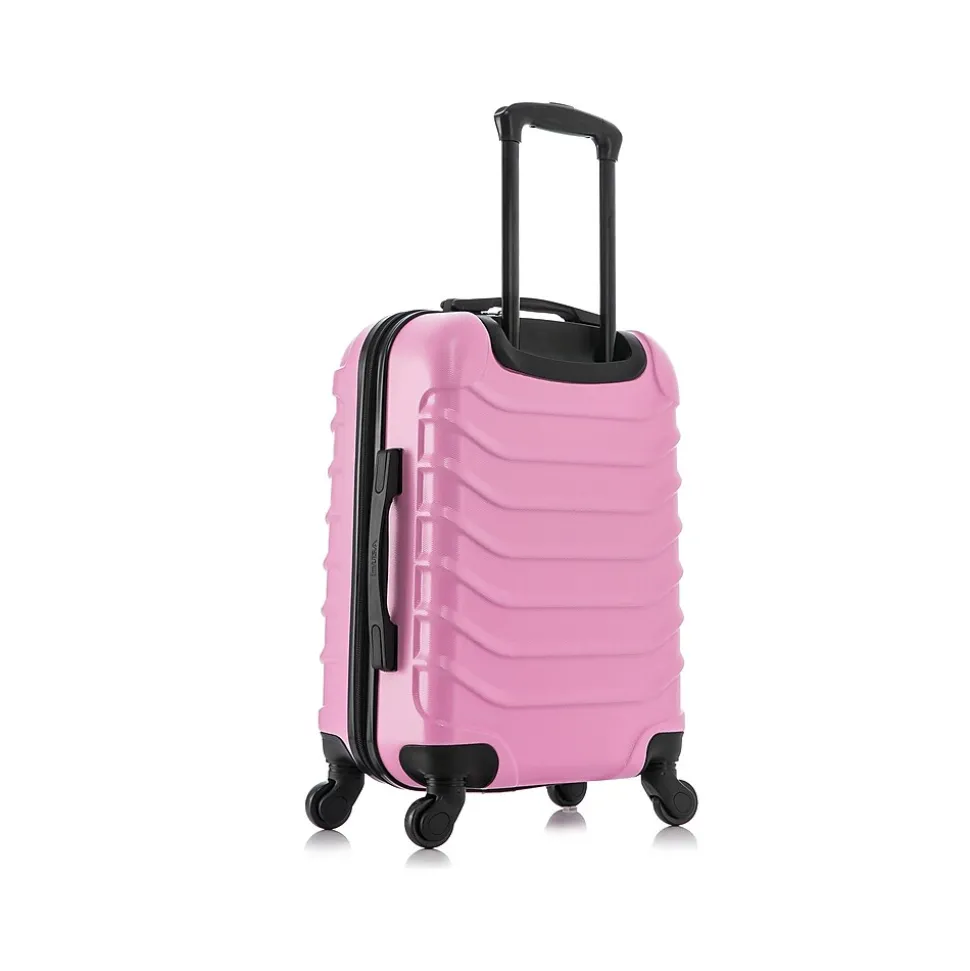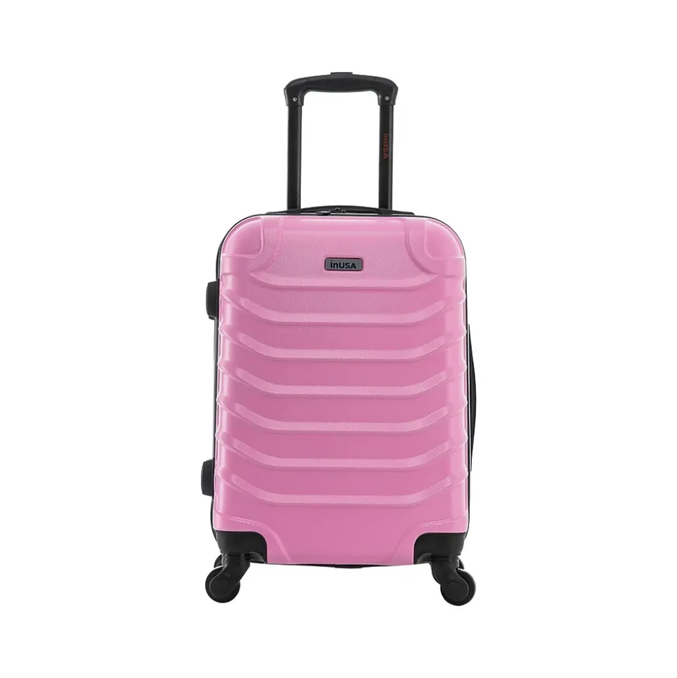 The InUSA Endurance 20″ hardside spinner luggage has a retractable trolley system, four spinner wheels, and ergonomic handles for comfortable transportation. The interior is fully lined and includes zippered compartments and elastic cross straps, while the luggage can stand upright.