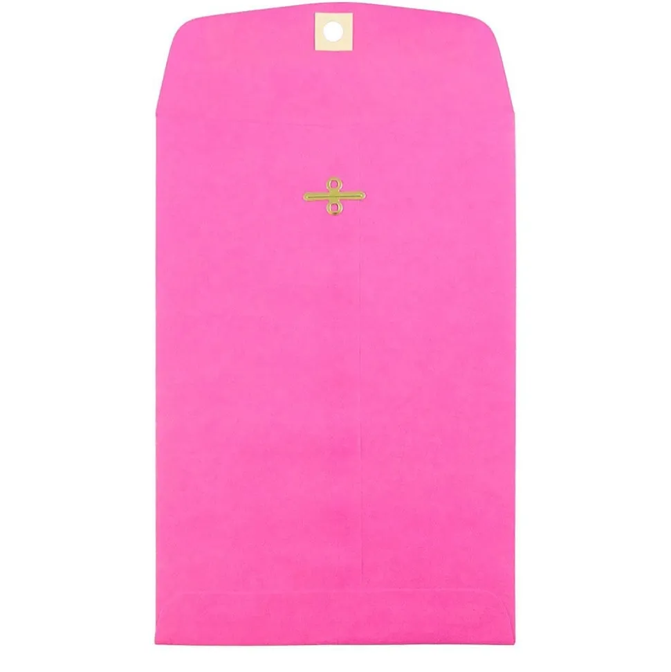 JAM PaperĀ® Ultra Fuchsia 6 x 9 Open End Envelopes with Clasp Closures are fantastic for personal and promotional mailings that need to get noticed! Their bright, vibrant fuchsia pink color makes them excellent for bridal shower invitations, breast cancer awareness fundraising materials, and much more. Each one of these envelopes measures 6 x 9 inches in size and is made out of smooth, high quality, 24lb paper. This pack contains an even total of 10 envelopes. Each one opens on the shorter endand has a commercial flap with a reliable and easy-to-use metal clasp closure, as well as an optional use gum closure for added reinforcement.