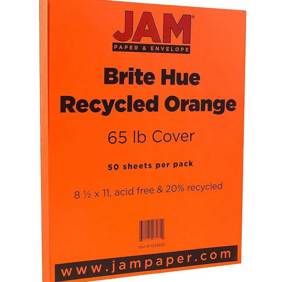 Thick and vibrant, this JAM PaperĀ® Bright Colored Cardstock is ideal for all of your paper needs. From invitations, to fun notes, or making your resume or project stand out, this brite hue orange paper will surely fit the bill! This cardstock is thick and luxurious and is made of smooth, 65lb paper, so it feels as good as it looks. Other uses for this cardstock include arts and crafts, posters, letters, business mailings, promotional pamphlets and more! It measures 8.5 x 11 inches, so it is a standard legal size. Not only that, it is made of 30% recycled content, so you can feel good about supporting the environment. This cardstock is sold in packs of 50.