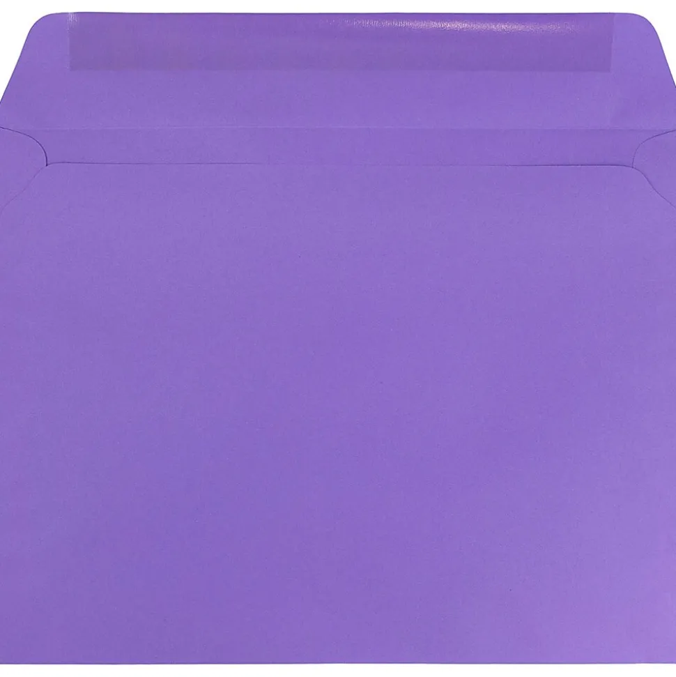 JAM PaperĀ® Violet Purple Recycled 9 x 12 Booklet Envelopes feature a bright, vibrant, and beautiful violet purple color that will stand out in any setting! These booklet style envelopes are made out of smooth, 30% recycled, 24lb paper. Each one features a straight flap and a reliable gum closure to keep them items placed inside secure as they travel through the mail. This pack contains a total of 25 envelopes. Each one measures 9 x 12 inches in size, making them ideal for enclosing standard letter sized sheet s of paper with no need for folding or creating creases. Use these purple envelopes for home mailing needs or for business promotions!
