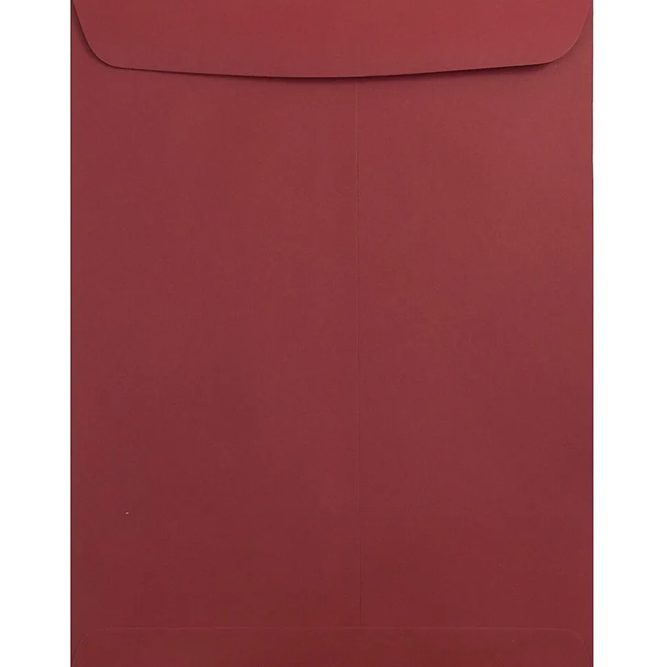 JAM Paper Dark Red 9 x 12 Open End Catalog Envelopes with Gum Closure are made out of high quality, 28lb, acid free, and archival paper and feature commercial style flaps with reliable gum closures to keep items secure as they travel through the mail. This pack contains a total of 100 envelopes. Each one measures 9 x 12 inches in size, making them ideal for standard sized sheets of paper. Use them to mail documents, forms, files,news or business letters, announcements, paper work, promotional materials, and more! The deep, dark, and rich red color of these envelopes gives them a luxurious appearance appropriate for personal and professional mailing needs.