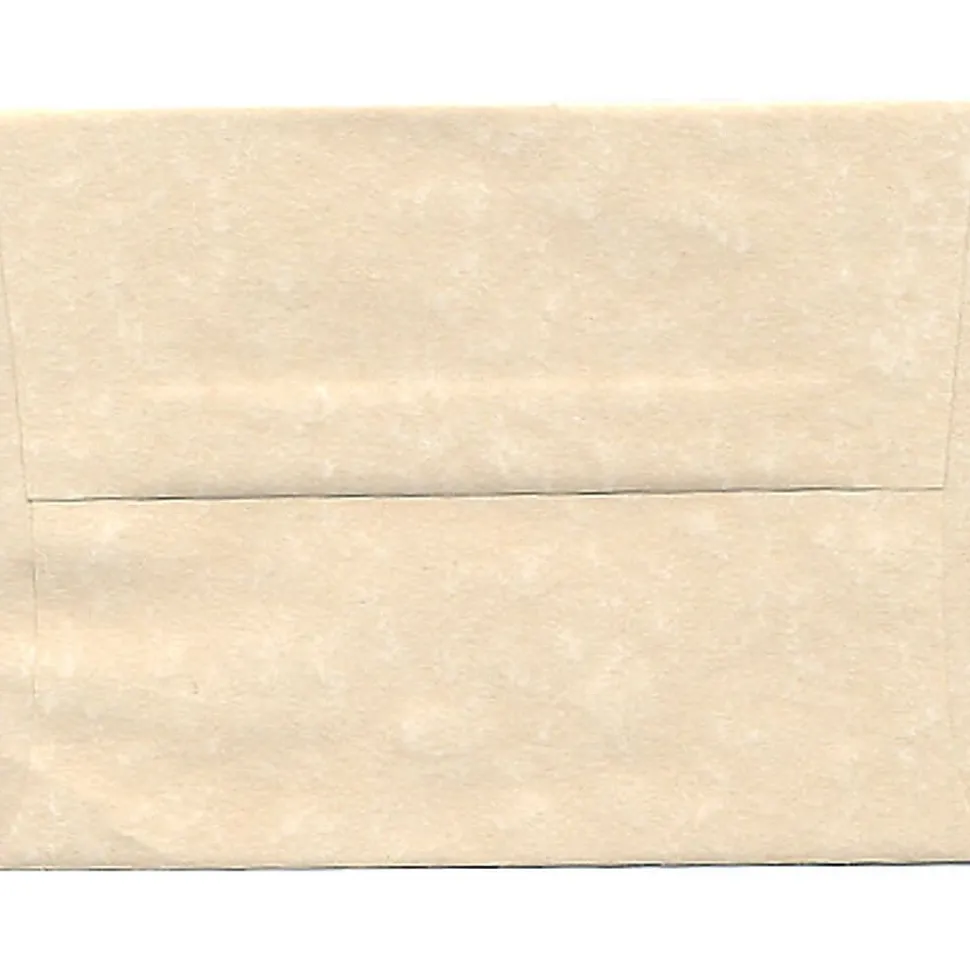 JAM PaperĀ® Parchment Natural Recycled A2 Invitation Envelopes measure 4 3/8 x 5 3/4 inches in size. These envelopes are made out of smooth, 30% recycled, 24lb paper. There is an eventotal of 50 envelopes in this pack. Use this large carton for a large variety of business, personal, and special occasion related mailing purposes. Each one of these envelopes features a straight flap with a reliable gum closure to keep the items placed inside of them secure as they make their way through the mail. These envelopes feature a light brown natural parchment shade that gives mail a timeless, sophisticated appearance!