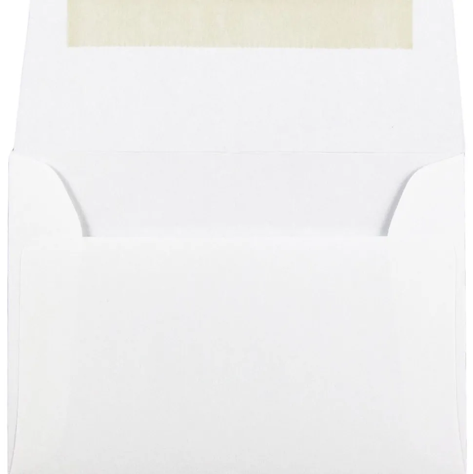 The JAM Paper A2 bright white wove strathmore envelope can be used to make your invitations and messages more personalized. Perfect for sending out greeting cards, thank you cards and invitations for parties, it aptly expresses the cordial nature of your invitations and messages to your friends and loved ones. Made of paper, it is high on durability and resistant to wear and tear. Its folding closure type offers a convenient opening and closing process and is ideal for carrying your messages, cards and invitation notes safely. Available in a lovely bright white shade, this envelope is apt for almost any occasion. The wove finish makes it a stylish accessory to go with your invites and notes. It includes 50 envelopes per pack to fulfill your need. Featuring a smooth surface to write the addresses, this envelope is perfect for sending invitations.