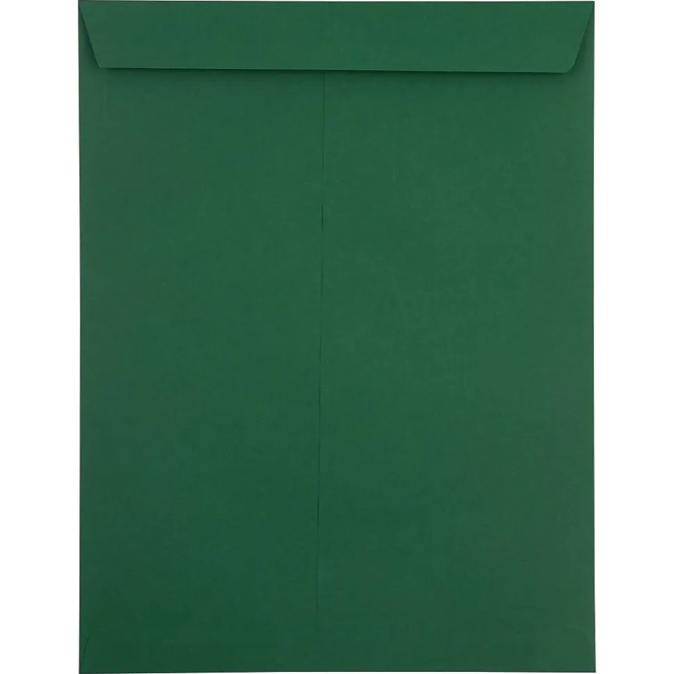 JAM Paper Dark Green 10 x 13 Open End Catalog Envelopes with Gum Closures are made out of 28lb, slightly textured paper! Each one measures 10 x 13 inches in length, the perfect size for enclosing standard and slightly larger sheets of paper without folding or bending. This pack contains 25 envelopes. Each one features a commercial style flap and a reliable gum closure! The dark, forest green color of these envelopes gives them a unique look that gives your personal and business mailings an extra hint of notice ability! Use these envelopes to mail documents, forms, letters, files, and more from your office or home.