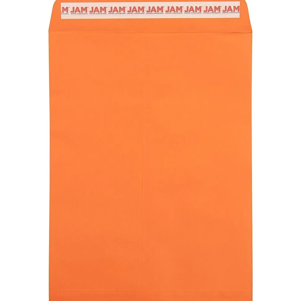 Are you looking for the right envelopes in which to send documents, flyers, files, packets, or booklets from your office or home? You cannot go wrong with JAM Paper Orange 9 x 12 Open End Envelopes. These envelopes are made out of smooth, 28lb paper and measure 9 x 12 inches, a size that makes them ideal for sending standard sized sheets of paper. This pack contains an even total of 100 envelopes! Each one features a basic and versatile orange color and closes with a straight flap and a secure peel and seal closure. These reliable envelopes areoptimal for mailing business documents, formal letters, applications, manuscripts, and much more! Size: 9in x 12in | Color: Orange | Quantity: 100