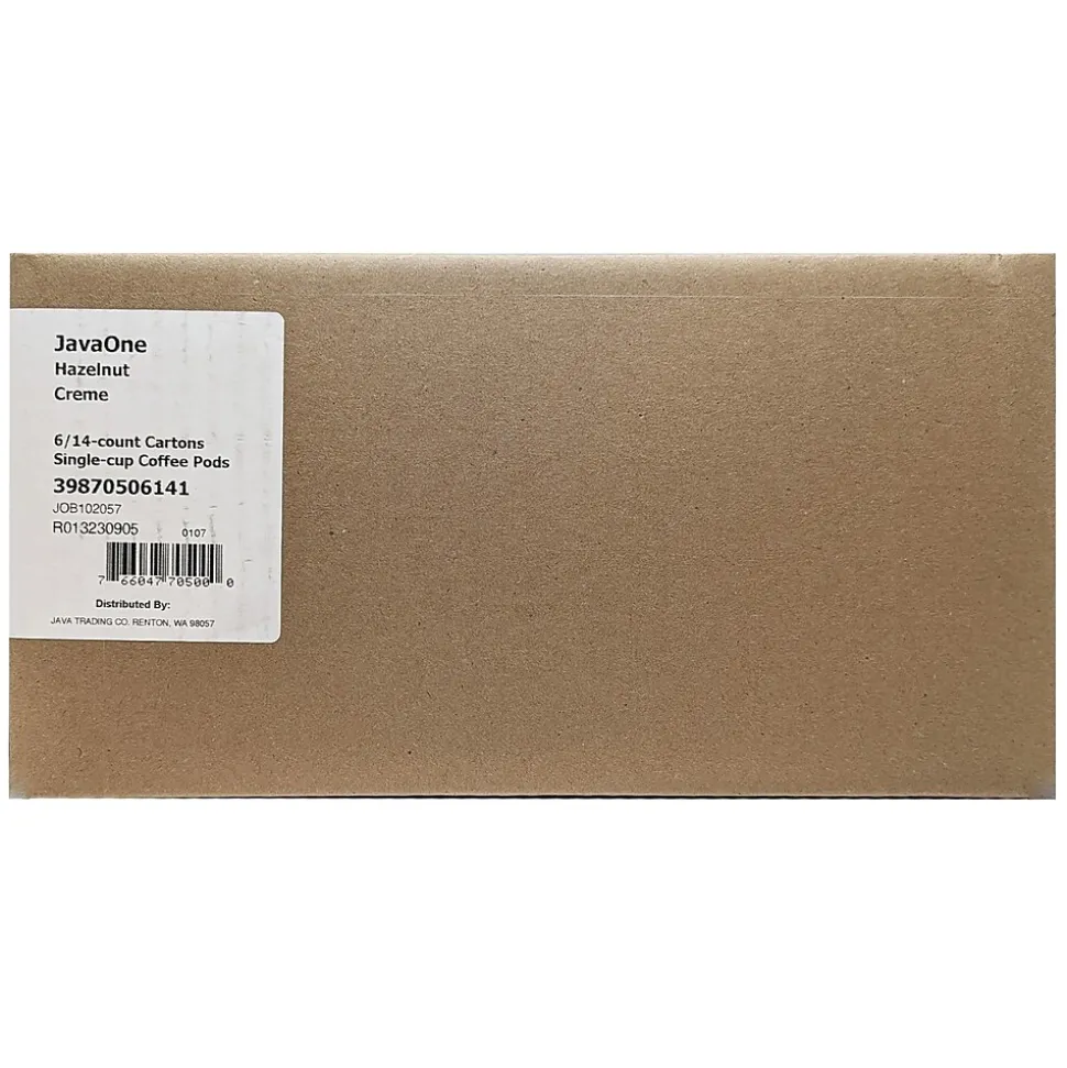 Java One® 3 oz Single cup hazelnut creme ground coffee comes in pod each brews 8- 10 oz cup of coffee depending on strength preference. Coffee has unique blend of 100 percent Arabica beans with nutty hazelnut flavor and is sold as 84 pods per case.