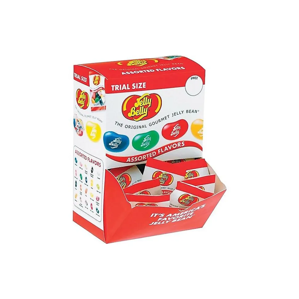 Savor 20 assorted flavors of Jelly Belly gourmet jelly beans. Each box contains 80 individually wrapped pouches of jelly beans in convenient trial-size units, and the recipe is kosher, fat-free, gluten-free, and peanut-free. Suitable for vegetarian and vegan diets, these sweet treats contain no dairy, eggs, or gelatin. These Jelly Belly assorted gourmet jelly beans are a versatile snack with a range of fun flavors.