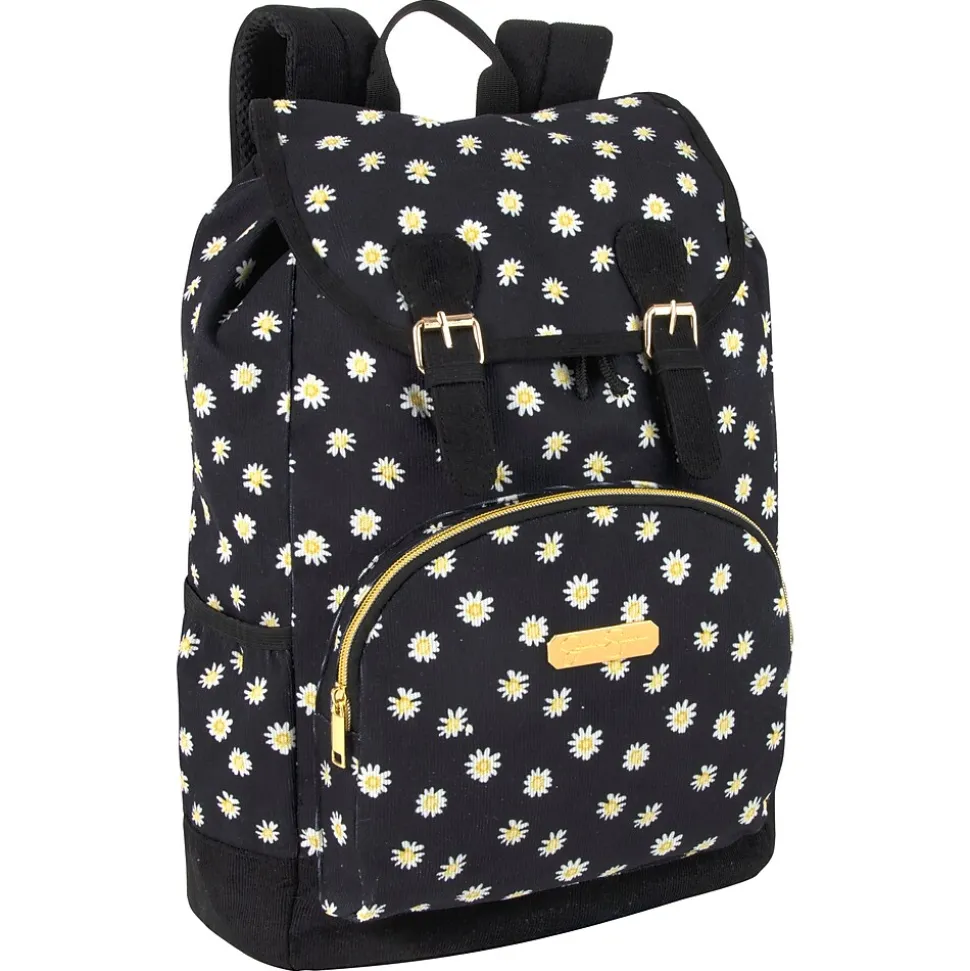 The Jessica Simpson modern everyday backpack has it all. Perfect for travel or school: pack everything you need from clothes and shoes to school books and documents in the large main compartment, and tuck away snacks, cell phone, hand sanitizer, passport, and even cash in its secure outer pockets. The soft padded straps and back ensure constant comfort, and the top carry handle lets you switch it up to carry the backpack anywhere. Plus, a bonus decorative key chain gives your bag a unique flair of its own. Travel well, head off to high school or college classes, work, or even just a weekend adventure with this bag that’s built to carry gym clothes, electronics, school books, and so much more.