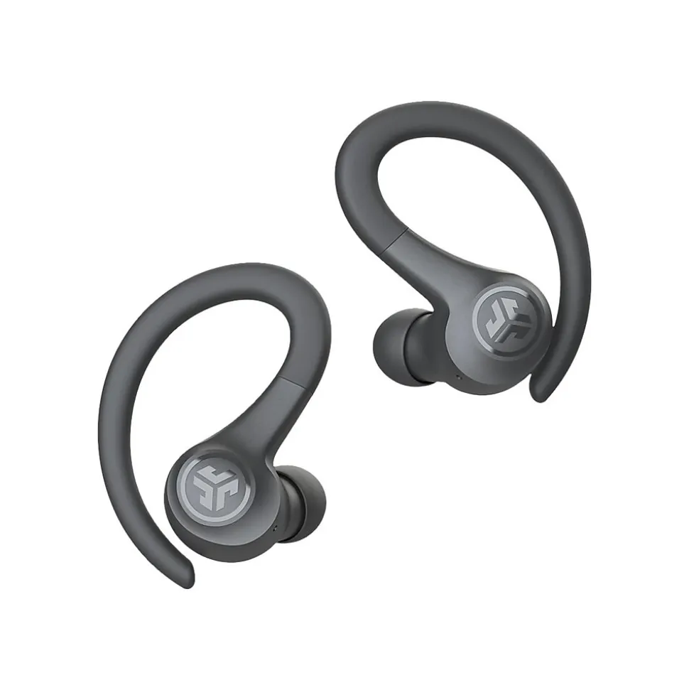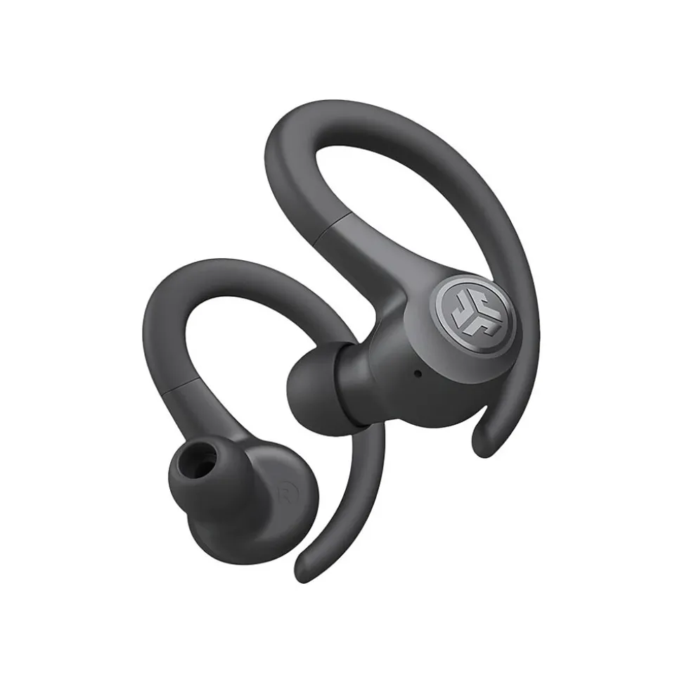Power through your hardest or easiest workout. With more than 32 hours of total playtime and small sport fit, this pair of JLab GO Air Sport earbuds is mighty (and fun). Auto connect to your device to walk, run, HIIT, or talk on the go. This pair of earbuds offers over 8 hours of playtime in each earbud and over 24 extra hours from the charging case (more than 32 hours in total). Return to the case to recharge the buds, and use the integrated USB cable to charge the case. An IP55 rating sweat resistance holds up against sweat and dirt, so hit the trails, the gym, and more. The ergonomic ear hook fits even the smallest ears and stays securely and comfortably in place. Try all sizes of the gel tips to get a secure fit and just go. Use either earbud independently, or use both together. A built-in MEMS microphone in each bud ensures clear calls. With just a few taps via touch sensors, you can choose your sound preference (JLab Signature, Balanced, and Bass Boost modes) without an app. Enjoy volume and track controls, plus play/pause, answering calls, and activating your smart assistant with the touch control functions.