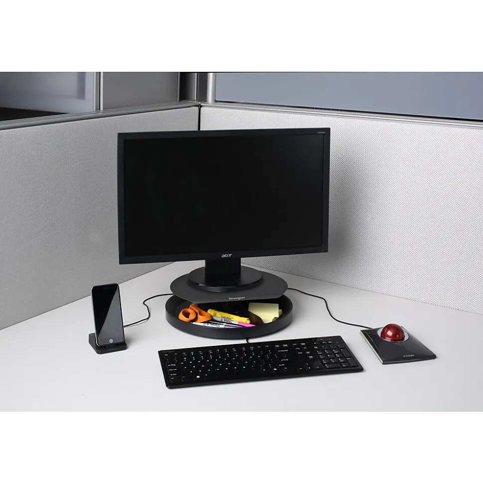Patented 360-degree spinning carousel organizes common desktop accessories