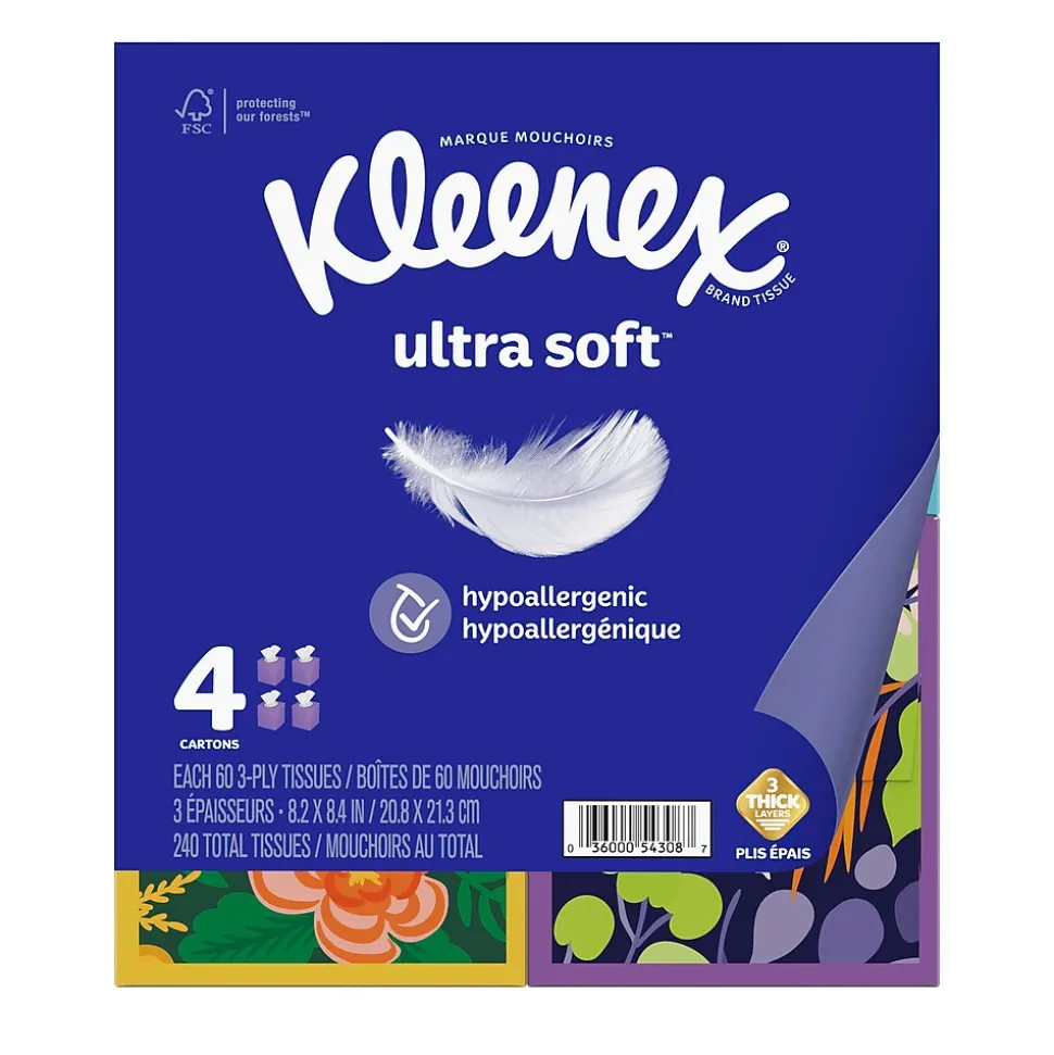 - Package includes 240 total tissues, 4 packs of 60 Kleenex Ultra Soft tissues that are great for everyday use