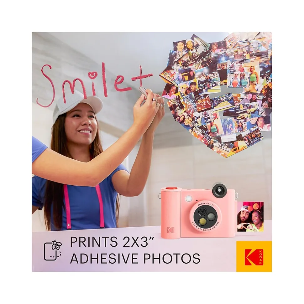 Make taking photos fun again with the Kodak Smile+ digital instant print camera. With this easy-to-use, enjoyable device, the smiles will never disappear. Take this rechargeable camera with you anywhere you go so you can take memory photos at the park, on vacation, during parties, on a road trip, and so on. And with the integrated filter-changing lens, taking new pictures never gets old. Add new spice and thrills to the photos you take by switching to a new filter in a second. With this fun-having camera, pictures stand out more than ever before. And since this camera is compatible with ZINK photo paper, you don’t need to worry about buying ink. Take a photo and watch your wonderful image print out on ink-free, sticky-backed paper. The Smile+ gives you a reason to put a smile on.