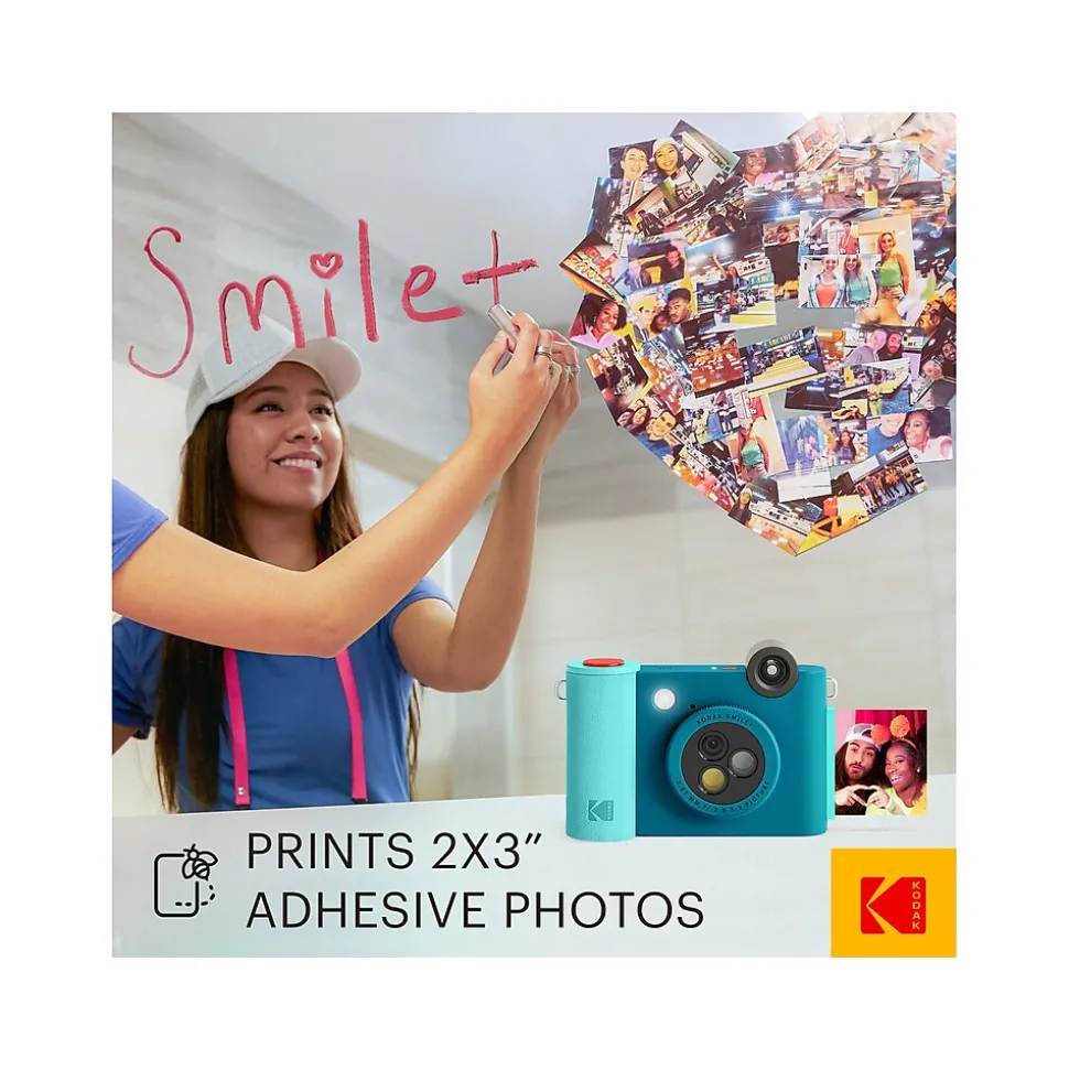Make taking photos fun again with the Kodak Smile+ digital instant print camera. With this easy-to-use, enjoyable device, the smiles will never disappear. Take this rechargeable camera with you anywhere you go so you can take memory photos at the park, on vacation, during parties, on a road trip, and so on. And with the integrated filter-changing lens, taking new pictures never gets old. Add new spice and thrills to the photos you take by switching to a new filter in a second. With this fun-having camera, pictures stand out more than ever before. And since this camera is compatible with ZINK photo paper, you don’t need to worry about buying ink. Take a photo and watch your wonderful image print out on ink-free, sticky-backed paper. The Smile+ gives you a reason to put a smile on.