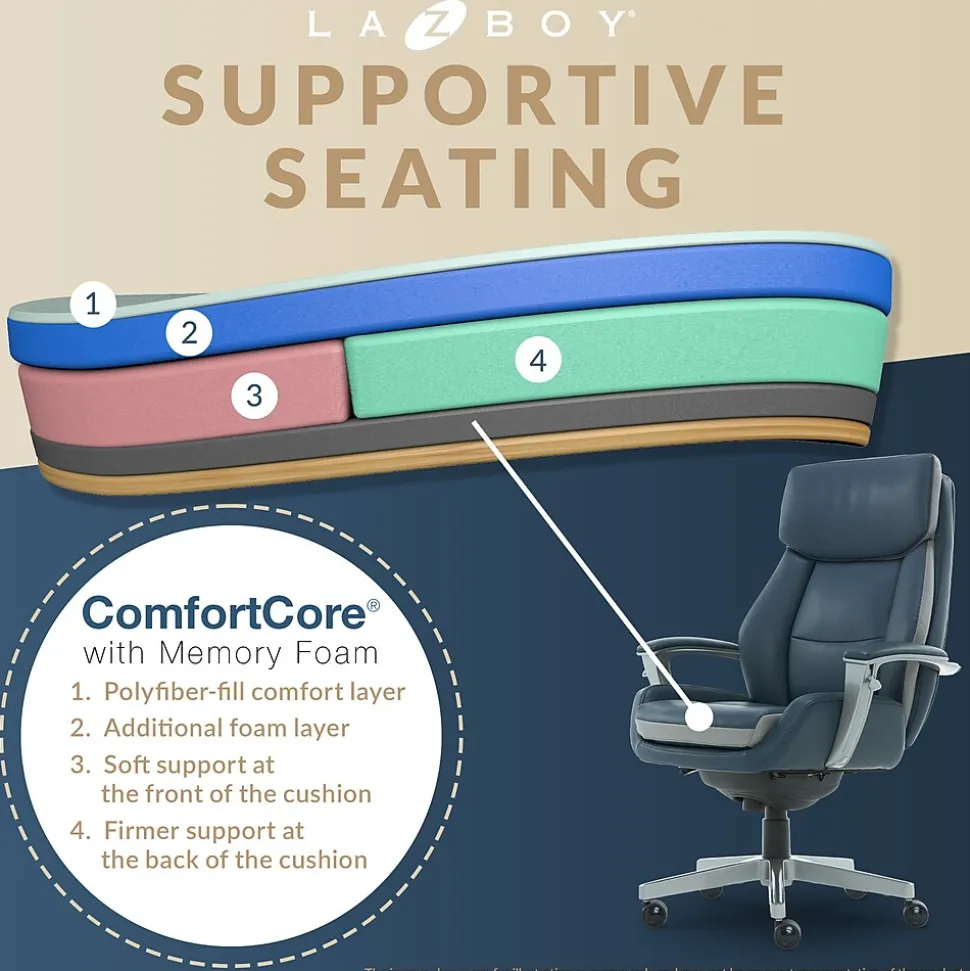 The La-Z-Boy Alton premier office seating comes standard with ComfortCore zoned technology for optimal firmness and lasting comfort. The advanced layering system is designed to offer a deliberate zone-based support. With a sleek design and comfort, the Alton executive chair will fit in your home office and at work.