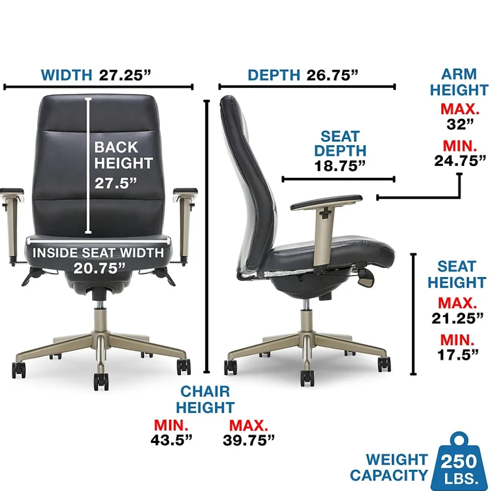 Supportive from top to bottom, this chair offers premium comfort, thanks to an advanced cushioning layer system and a bevy of ergonomic features. But the Baylor’s style doesn’t skip a beat either: inspired by Herman Miller, the artisan furniture makers use streamlined elements, soft curves, and metal accents to create an immediate eye-catching look. Ergonomic and adjustable, this La-Z-Boy office chair allows you to control the height and tilt to suit your sit positioning and give you an optimized body alignment. La-Z-Boy office chairs are designed to put your comfort first with quality that’s built to last, so your work day is always engaged and productive.