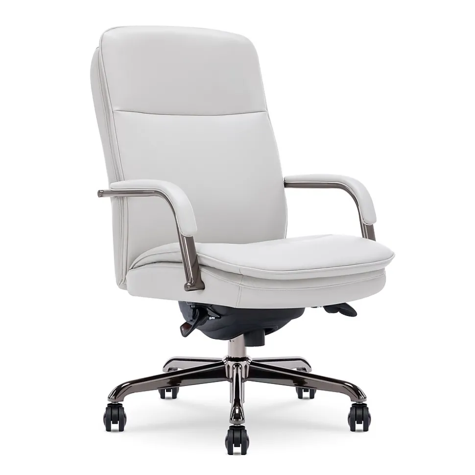 La-Z-Boy offers quality furniture for every room, from stylish sofas and loveseats to supportive recliners and office chairs. For over 95 years, we’ve been bringing comfort and lasting quality to homes, all crafted with a dedication to excellence. We’re passionate about creating furniture that fits your life, with endless styles to match your home. Imagine the La-Z-Boy Opus Executive Chair as the centerpiece of your office. Its sleek design blends modern sophistication with luxurious comfort. The Opus embraces minimalist chic with clean lines accented by a single, delicate channel tuft on both the seat and backrest. The piped edges adds a tailored finish while the sculpted, industrial-inspired arms and your choice of a polished gold, graphite, or chrome base elevate the entire look. This stunning mid-back chair prioritizes your well-being as much as its aesthetics. Supportive contours adapt to your posture, while the double-layer, semi-plush cushion seat and padded armrests provide comfort throughout the workday. It feels like having your favorite recliner right at your desk. Upholstered in easy-care bonded leather, the Opus comes in 5 timeless colors (white, gray, cognac, black, and dark brown) to complement your existing décor. The sturdy metal base lets you swivel with ease, and the dual casters can handle the deepest rug and carpet. Adjusting the height and tilt is a breeze with the handy seat-side fingertip control panels to find your ideal seating position. Upgrade your workspace, home office, or the corner office with a chair that mixes effortless style and workday comfort to look as good as it feels to sit in. La-Z-Boy is a trademark of La-Z-Boy Incorporated and is used under license to Living Style (Singapore) Pte. Limited.
