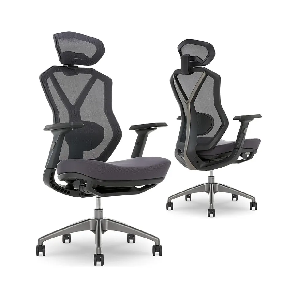 The Lenovo Legion mesh gaming chair is one of the most advanced gaming and office chairs in the market today. Tested and proven to provide maximum comfort during extended periods of use. Perfect for those who want to game or work in style, the chair has an adjustable headrest, lumbar support, and 4D arms that can all be fully customized to fit you like a glove. The ergonomic side seat controls let you fine-tune every little detail, while the durable base and seat construction make it tough enough to stand up to even the most intense gaming sessions, all while supporting up to 275 lbs. The 360-degree dual-wheel swivel casters effortlessly glide and swivel. Best of all, the breathable mesh fabric keeps you cool and comfortable even when things start to heat up.