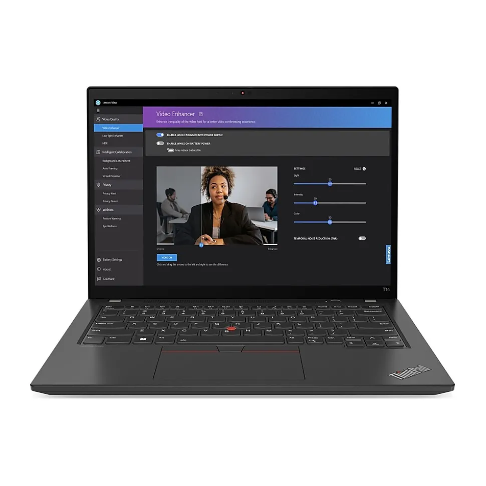 Along with post-consumer content, recycled plastic in the enclosures for the speaker and battery, and the AC adapter, the packaging is plastic-free with 90% recycled and/or sustainable materials. Plus, the manufacturing process uses low-temperature soldering. When you’re out on the road, you never know what the connectivity situation will be, or whether you’ll find an available electrical outlet. The ThinkPad T14 Gen 4 laptop definitely keeps you covered in both regards! Lightning-quick WiFi keeps you online when wireless coverage is available. Lenovo uses the US Department of Defense’s MIL-STD 810H standards to create a balance of reliability and durability for our ThinkPad laptops. We test against 12 standards and more than 200 quality checks to ensure they run in extreme conditions. These tests cover harsh variables like Arctic wilderness and desert dust storms, including temperature, pressure, humidity, vibration, and more.
