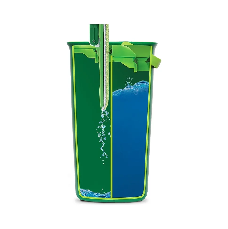 - Mop bucket has a dual-chamber system that works to remove water and dirt efficiently from the mop head
