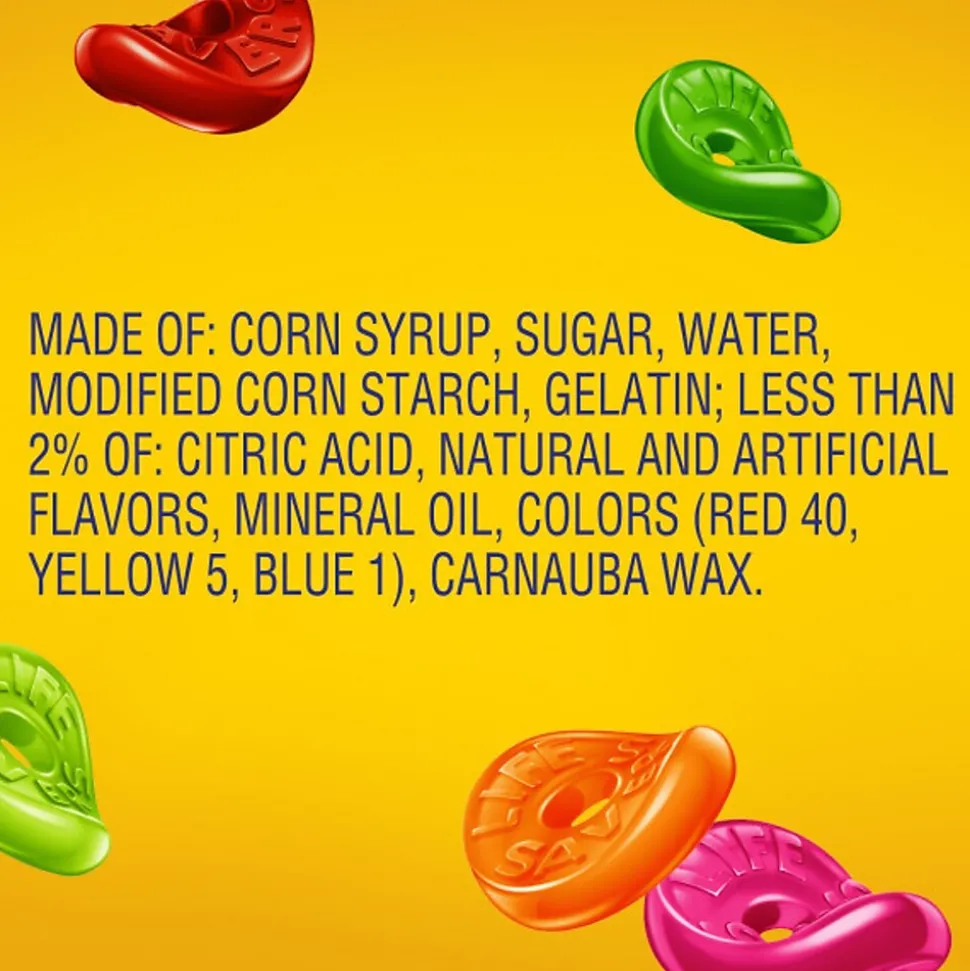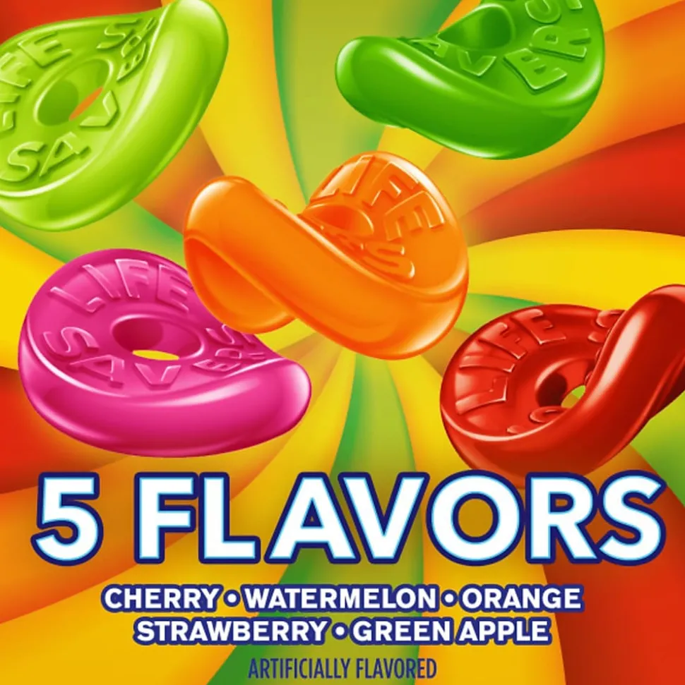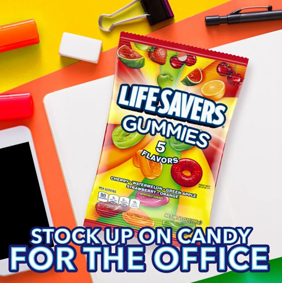 Grab these soft candies for a quick snack or add them to the office candy dish for a unique treat. Each bag of Life Savers gummy candies contains an assortment of bite-sized gummies in five classic fruit flavors, making it easy for everyone to find something they like.