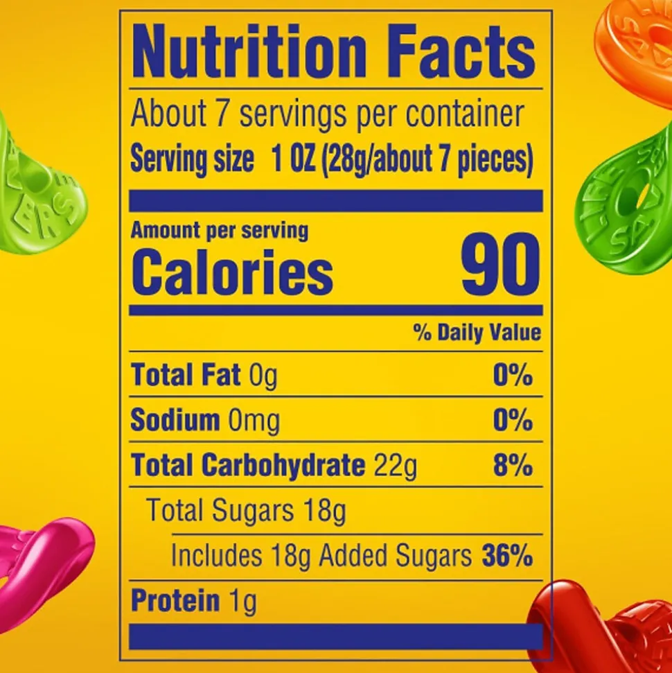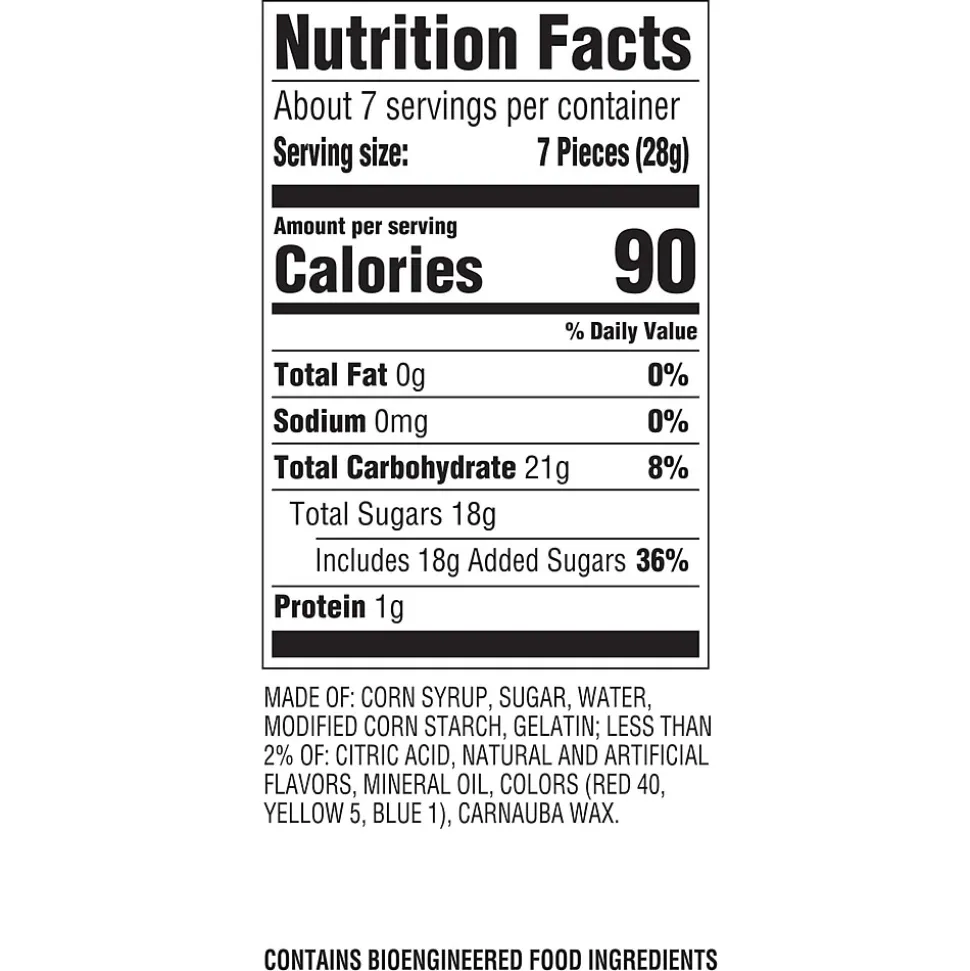 | Gummy & Chewy Candy Type Actual manufacturer name for flavor | strawberry, wild cherry, blackberry, green apple, and watermelon |