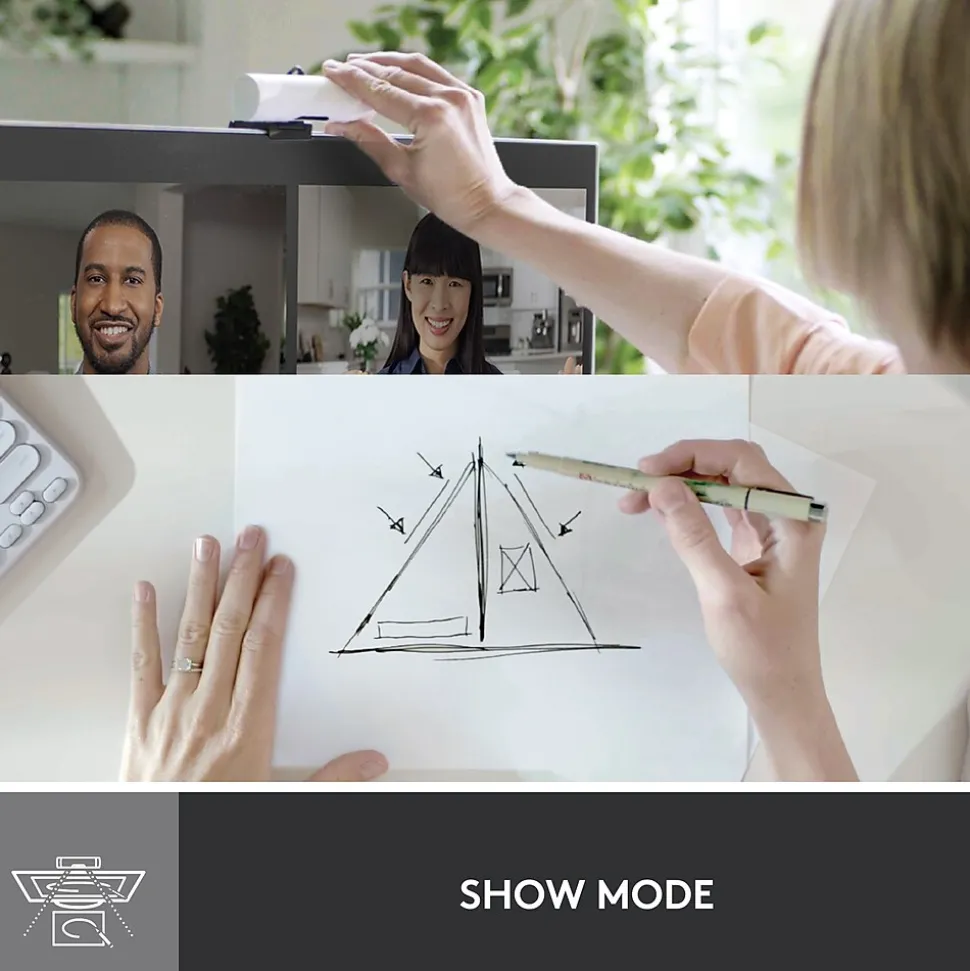 - Show Mode: Present your work or other objects on your desk with Show Mode, which lets you tilt the web camera up or down with one hand